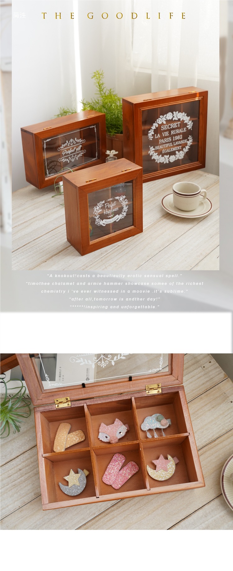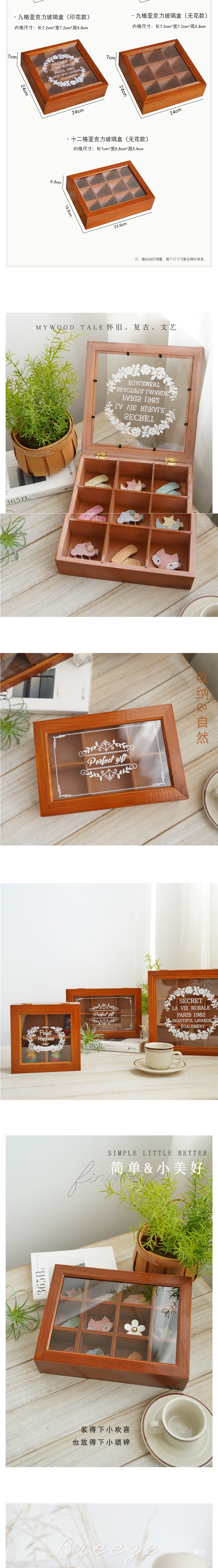 木质复古收纳盒化妆品杂物储物盒首饰盒带翻盖亚克力玻璃盖木盒子