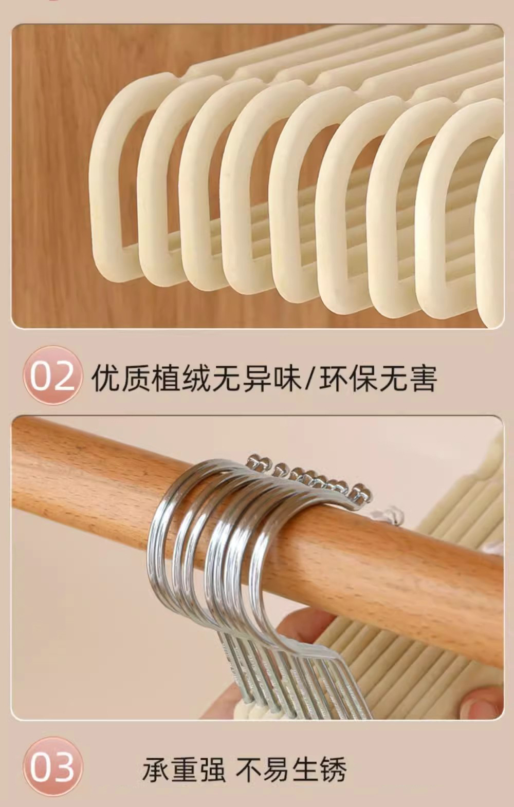 工場卸売ショートネックハンガー滑り止め無痕低首ビロード植毛ハンガー家庭用超低省スペース