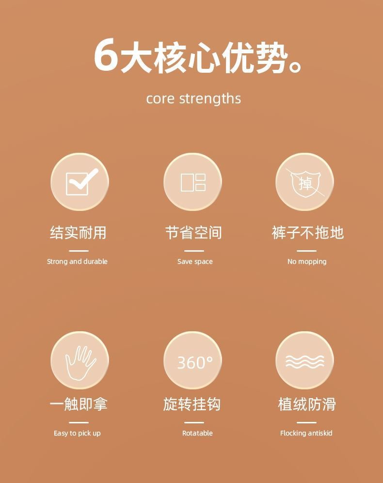 長方形植毛滑り止めズボンラック、スリムで痕跡のない家庭用ズボンハンガー、省スペース収納アーティファクト、工場卸売