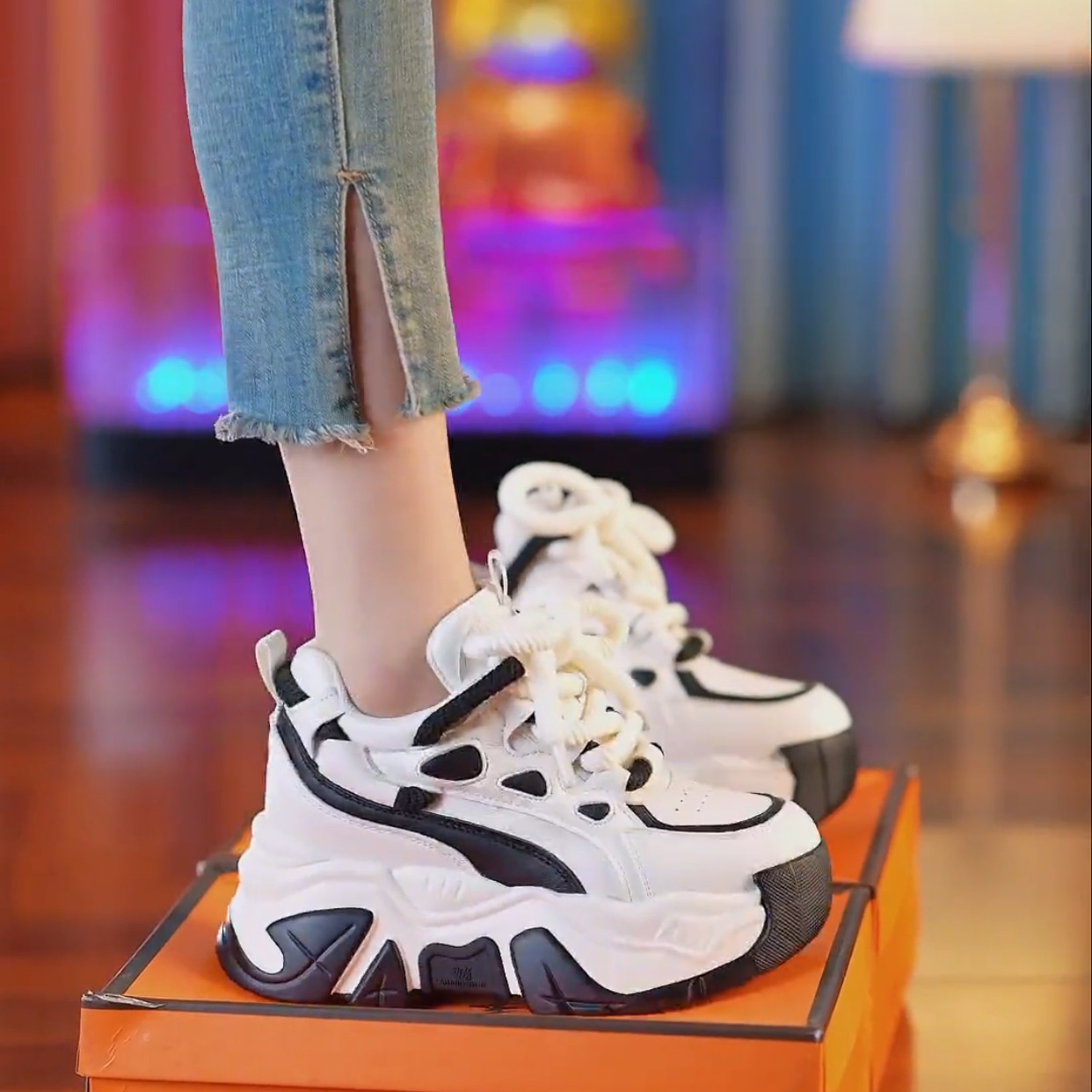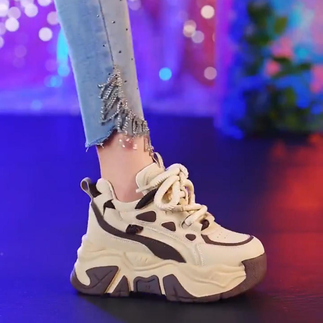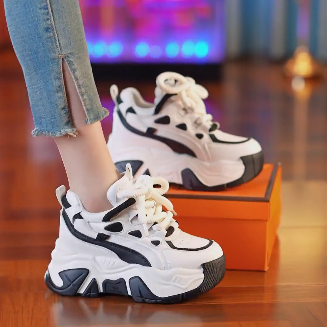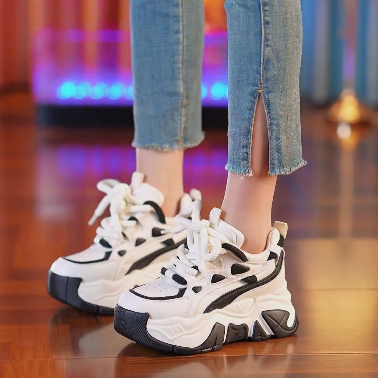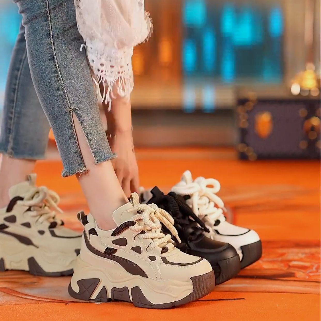 トレンドの厚底スニーカー、レディースダッドシューズ、2025秋冬新作、小柄な方向け身長アップシューズ