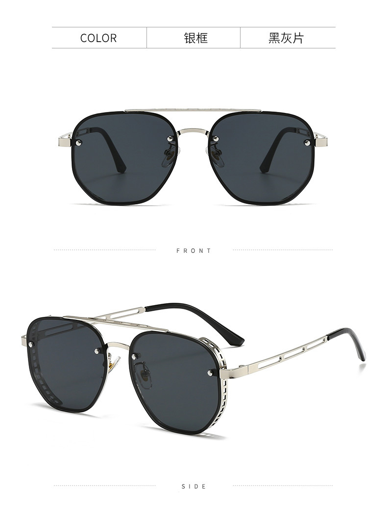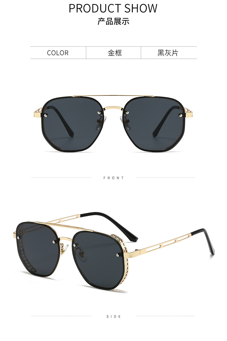 新款双梁时尚大框侧边镂空太阳镜高级感跨境偏光墨镜防紫外线外贸