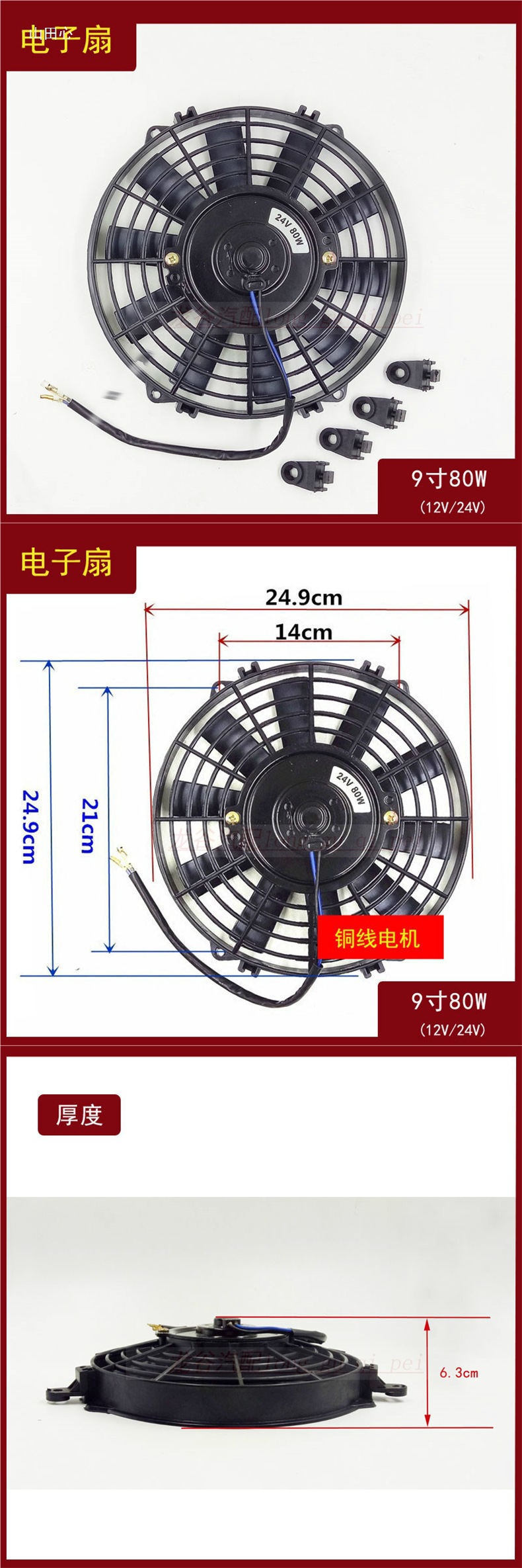 カーエアコン電子ファン冷却ファン 9 インチ 80w12v24V 吸引ブローカーリフォーム凝縮ファン