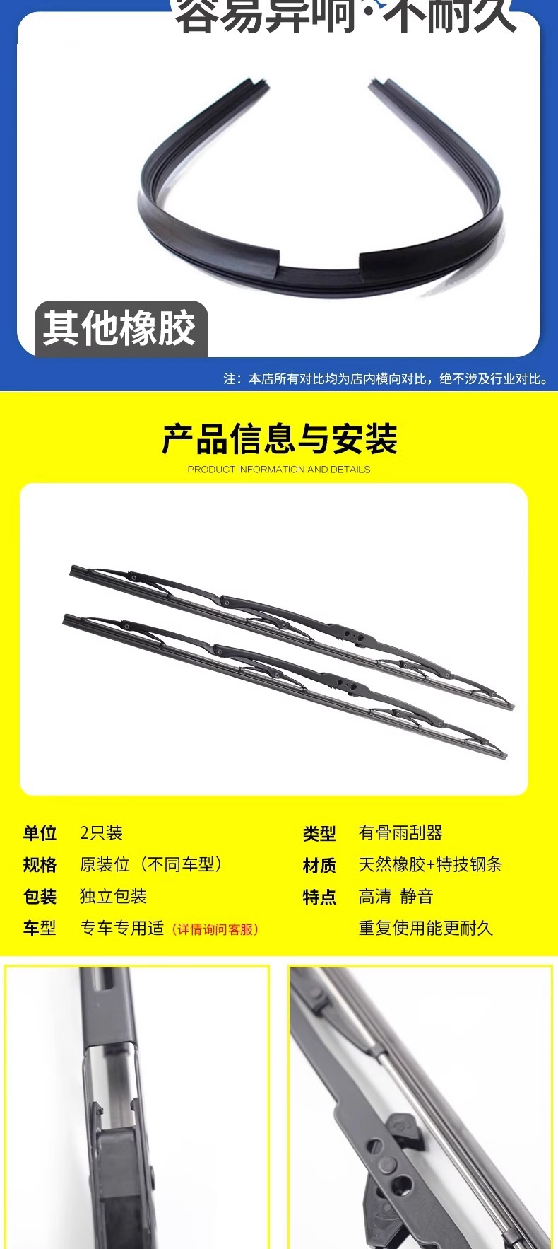 卸売 骨付きワイパー ワイパー鉄製フレーム ブレード 車用ワイパー 静音 多機能ワイパー 天然ゴム素材
