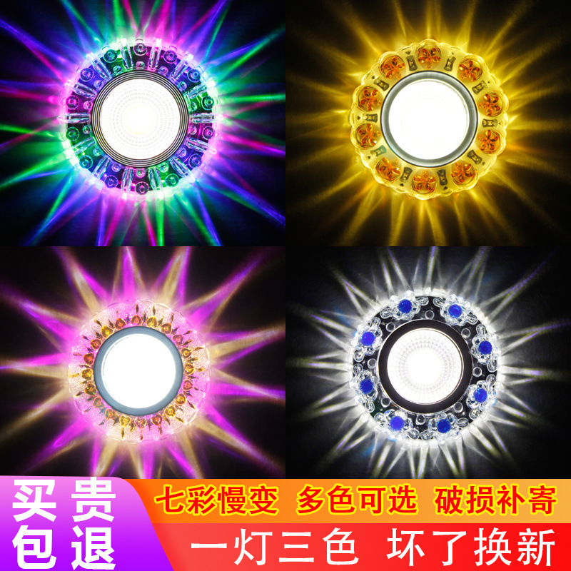 クリスタルスポットライト LED シーリングライト ダウンライト リビングルームの天井 カラー通路ライト 廊下ライト 穴ライト 穴ライト 埋め込み