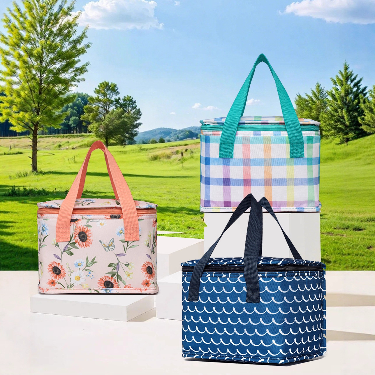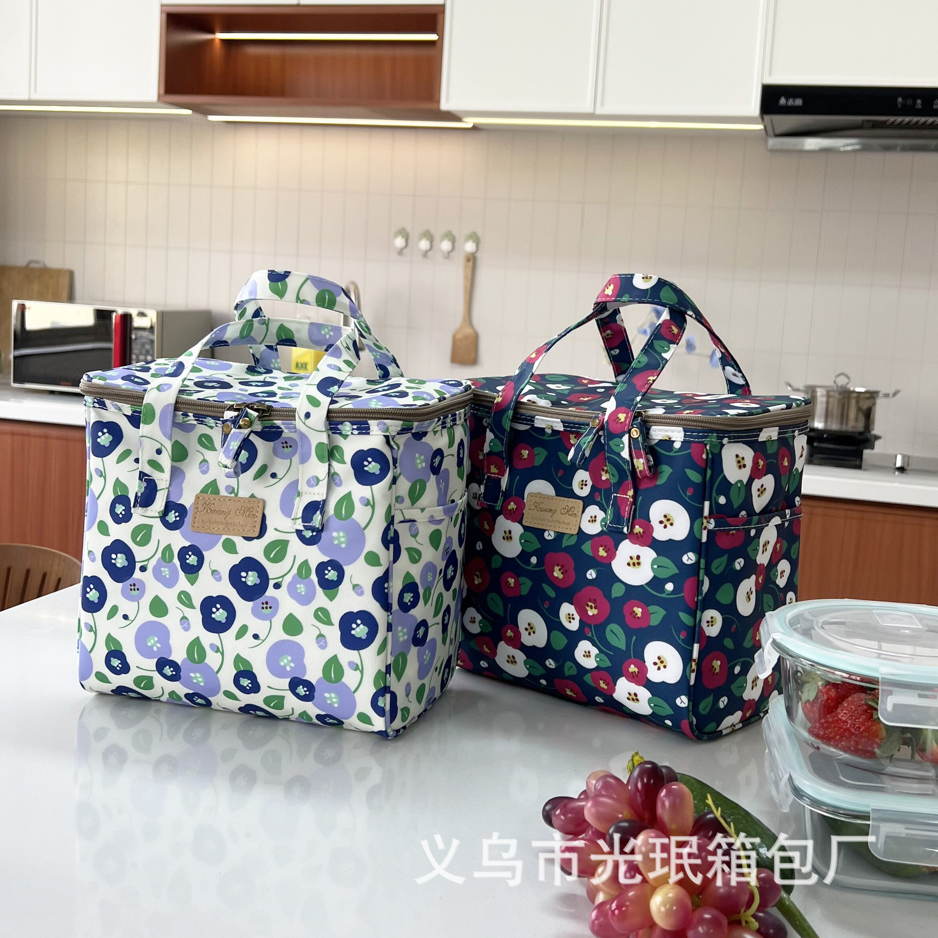 现货外卖保温袋批发户外野餐保温手提冰包彩色印花6L学生便当包