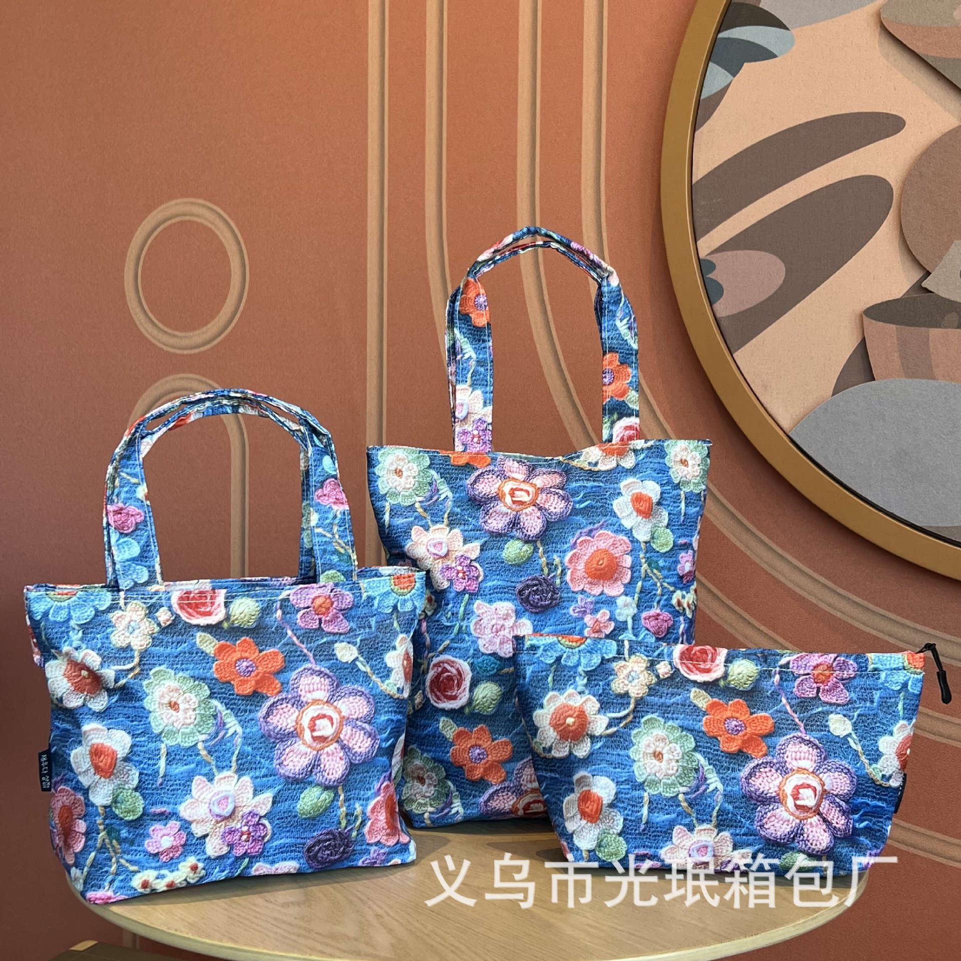 新款花朵手拎袋休闲大容量手提包百搭外出收纳包化妆包便携手提袋