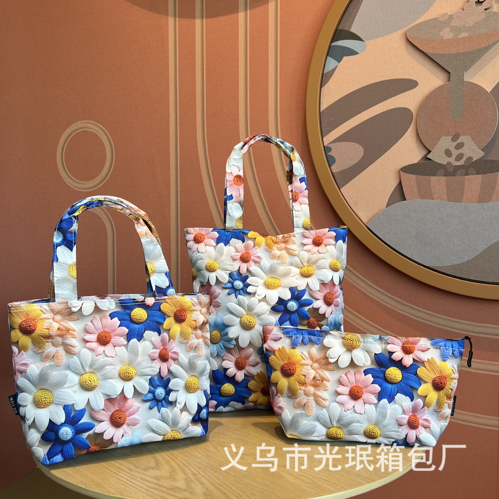 新款花朵手拎袋大容量雏菊手提包百搭外出收纳包化妆包便携手提袋