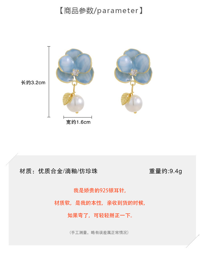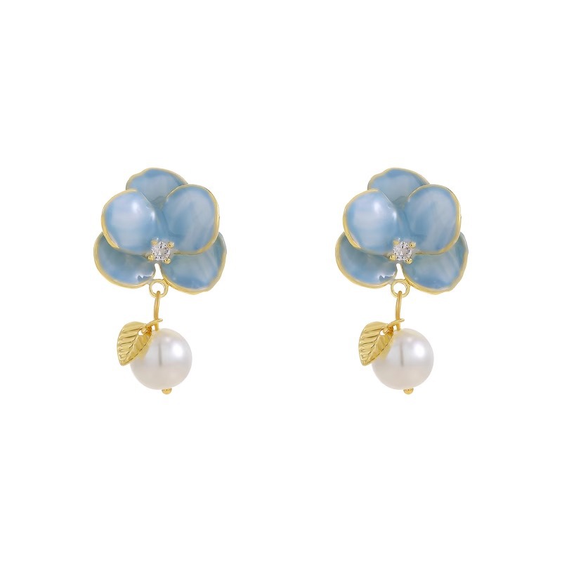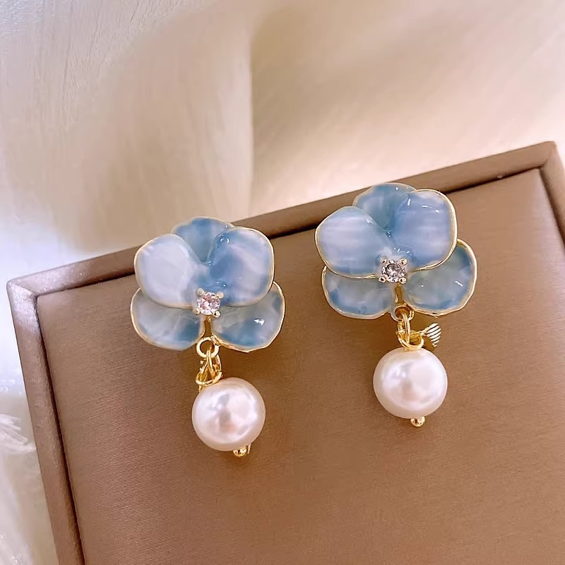 甘くてかわいい釉薬の花のパールペンダントイヤリング、優しく軽い高級感、ユニークなフォレストスタイルのレトロな気質のパーソナライズされたイヤリング