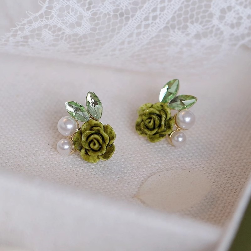 S925銀針緑のツバキのピアスが甘くて清新な森系のイヤリングがシンプルで高級感のある花のイヤリングの女性です。