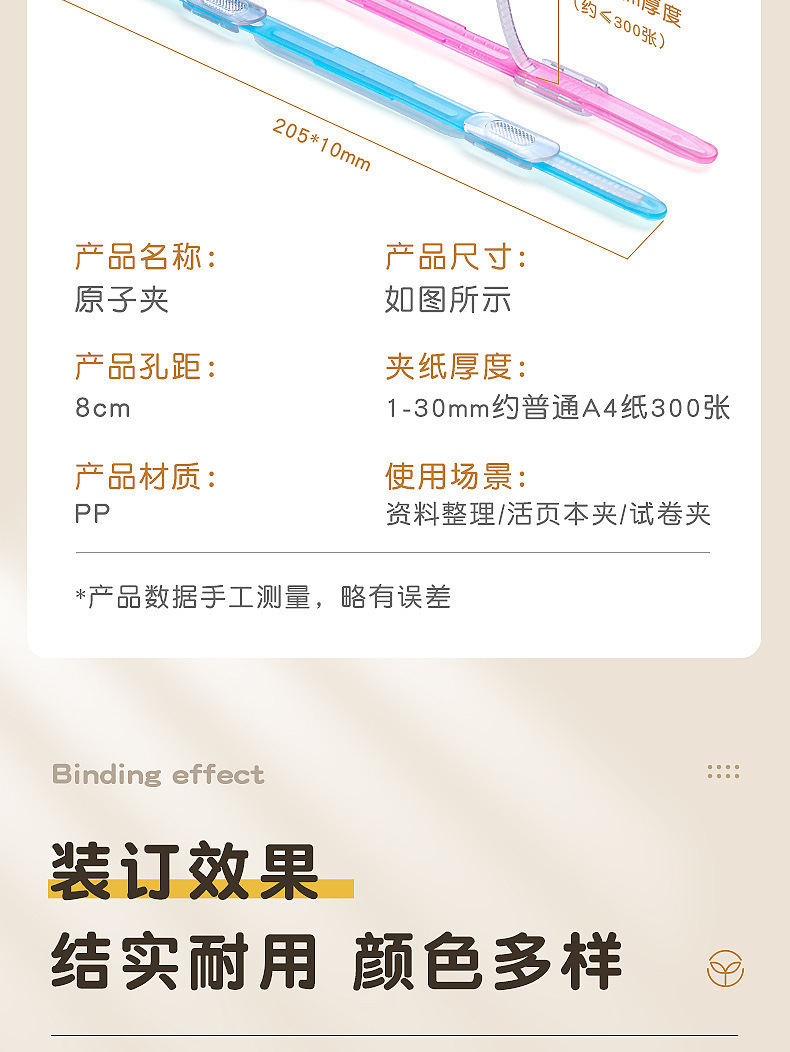 学生用アトミッククリップPPバインディングクリップ高価値カラフルシュガーシリーズ情報テスト用紙情報ファイルバインディングストリップブック