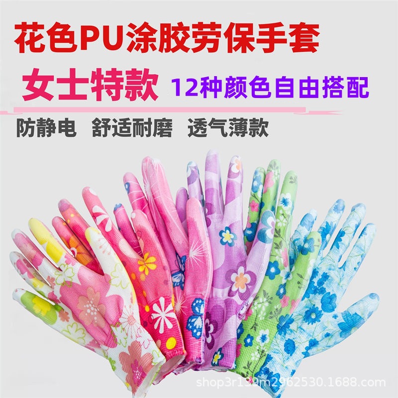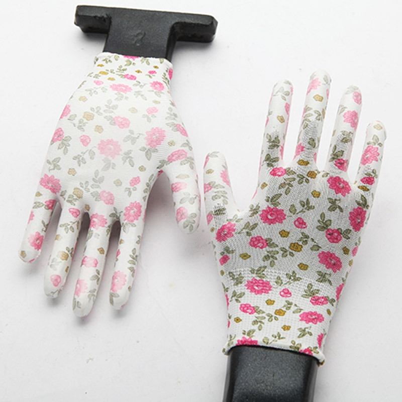 花柄PU塗掌セット女性労働保護滑り止めプリント塗装卸売り薄手労働保護手袋
