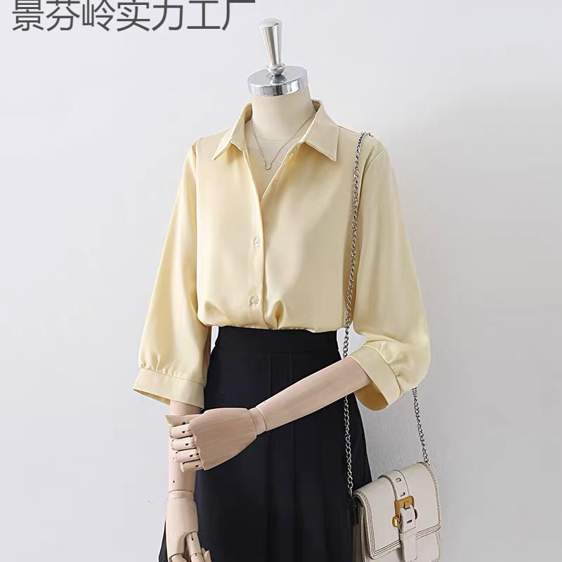 2025初秋の新作女性用シフォンシャツ、高級プロ通勤シャツ、女性用七分袖ドレープトップス