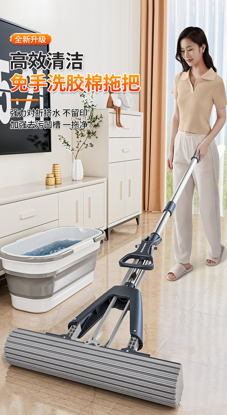 ベストヘルパースポンジモップ 2025 新しい家庭用ワンモップ乾湿両用吸収性ハンドフリーグルコメチルコールドヘッドモップ