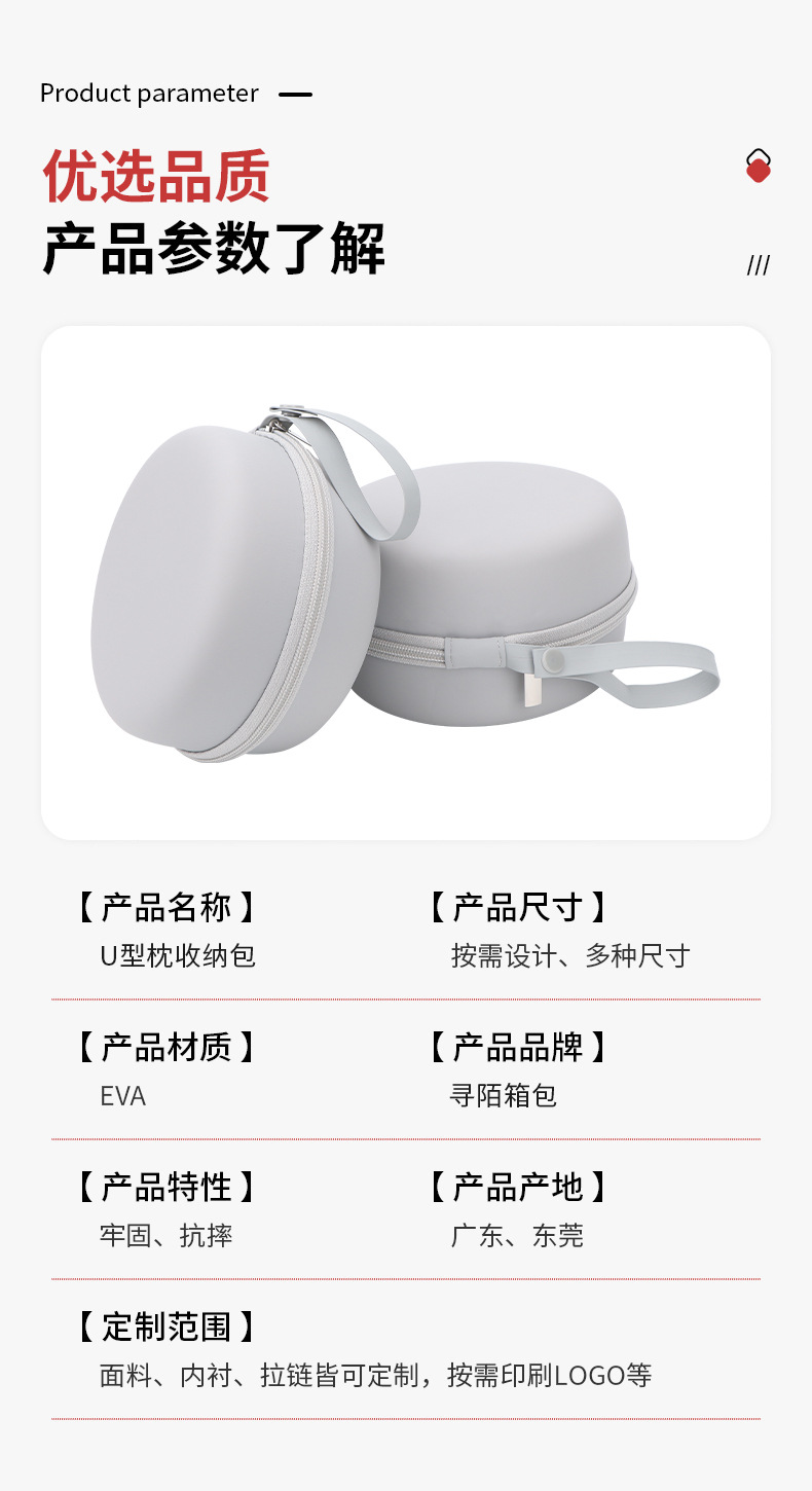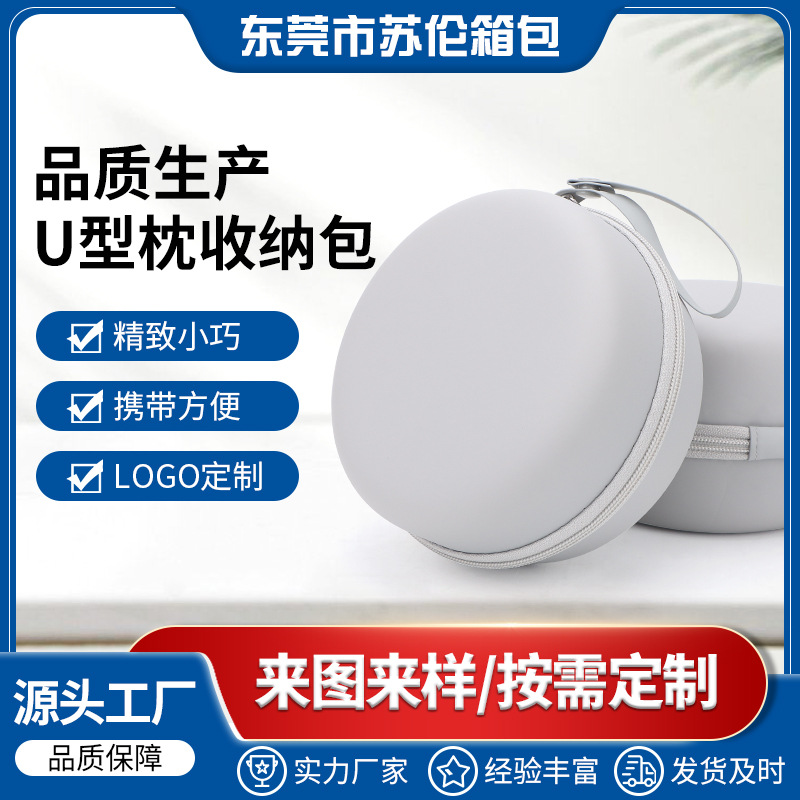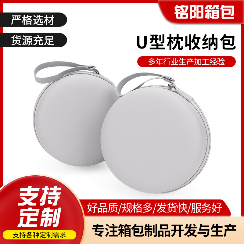 旅行户外U型枕圆形收纳包数码简约拉链包eva硬壳记忆棉枕包装盒