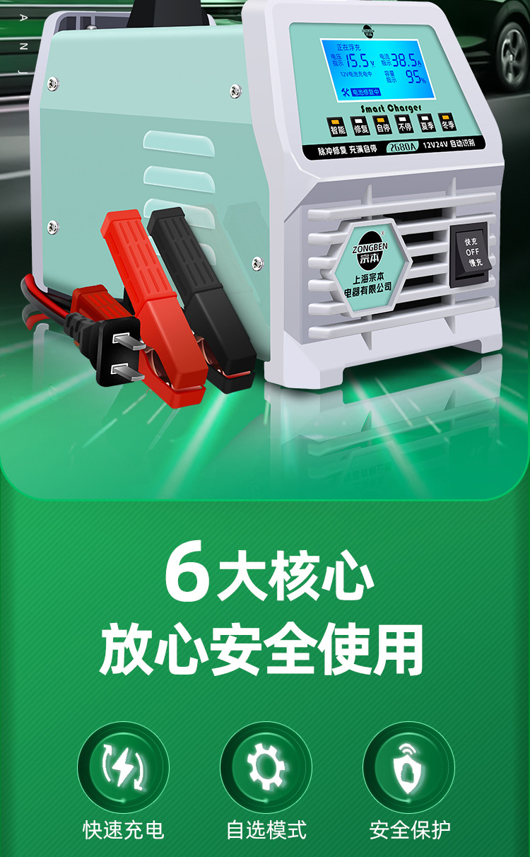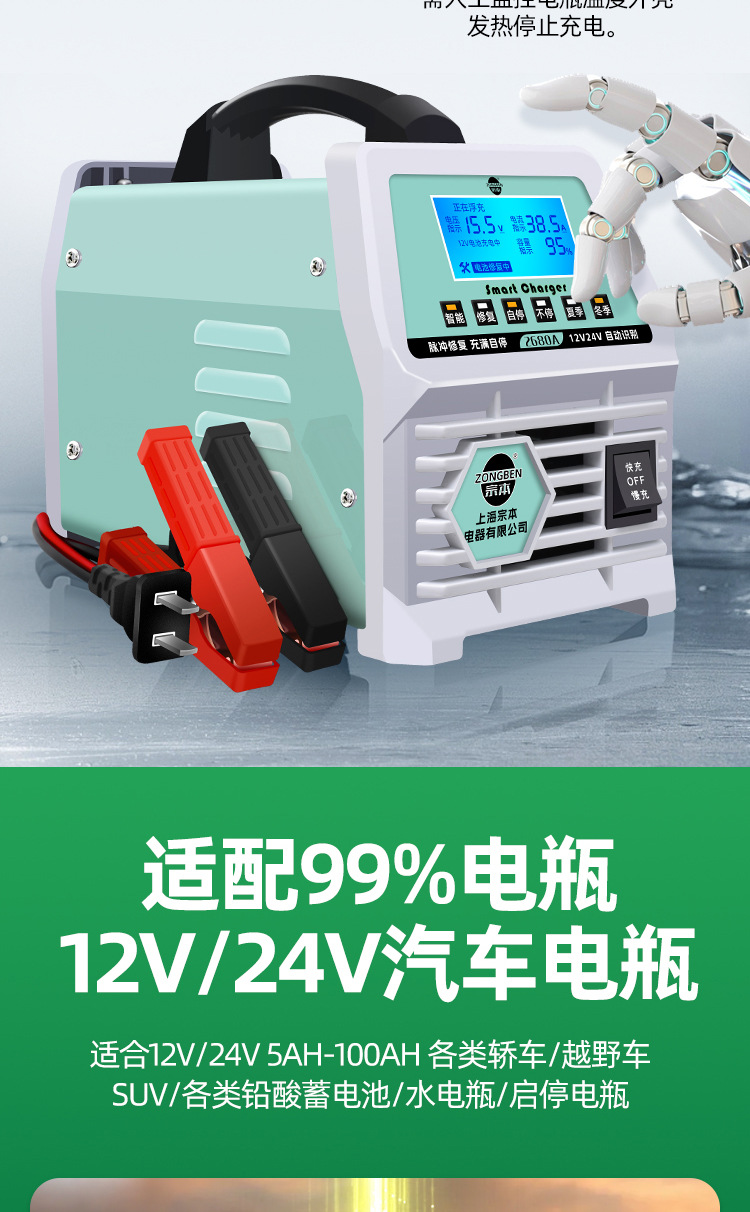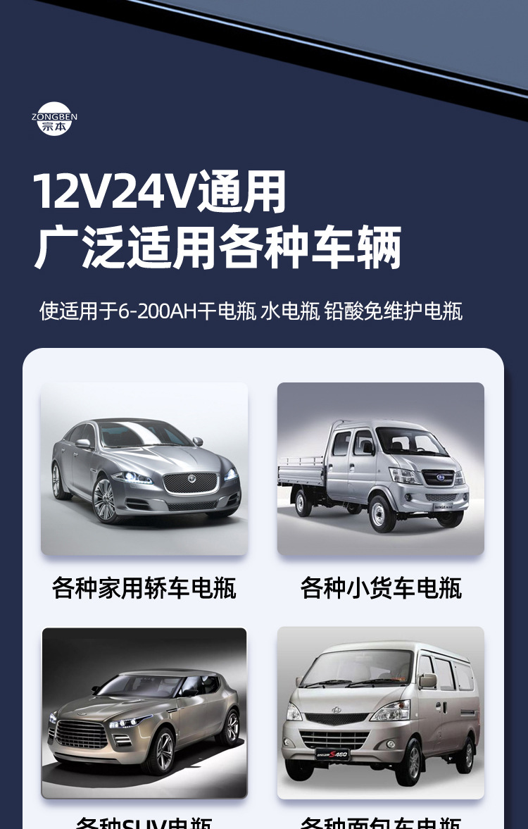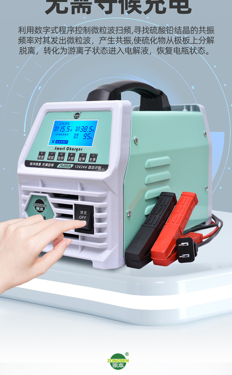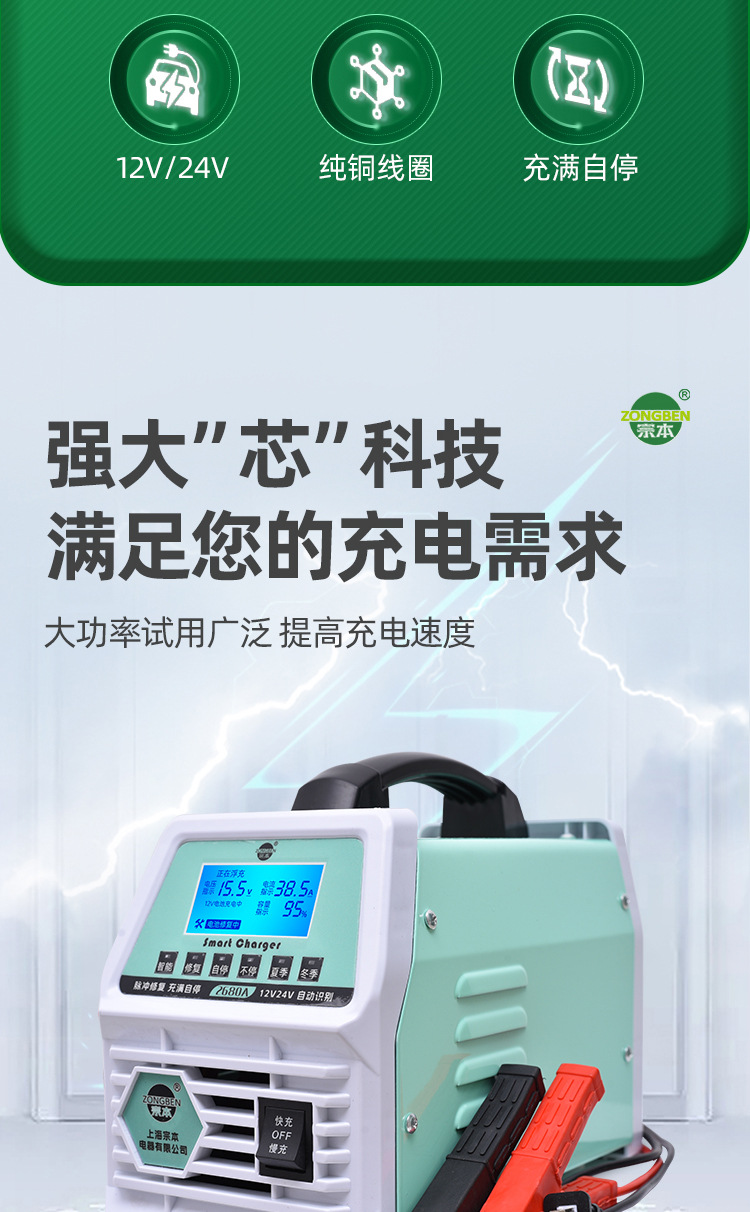 上海 Zongben 全自動インテリジェント純銅車のバッテリー充電器 12V24V セダンストップスタートバッテリー充電器