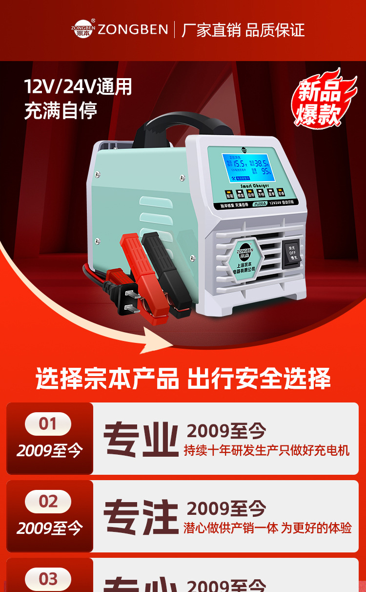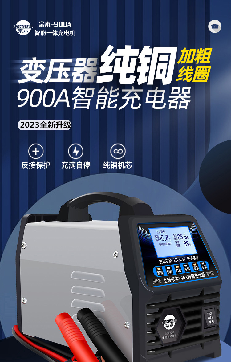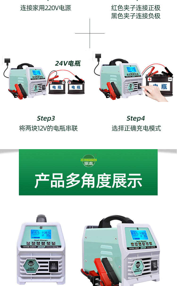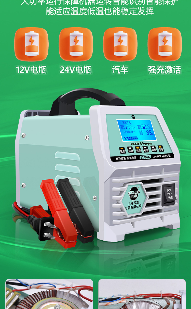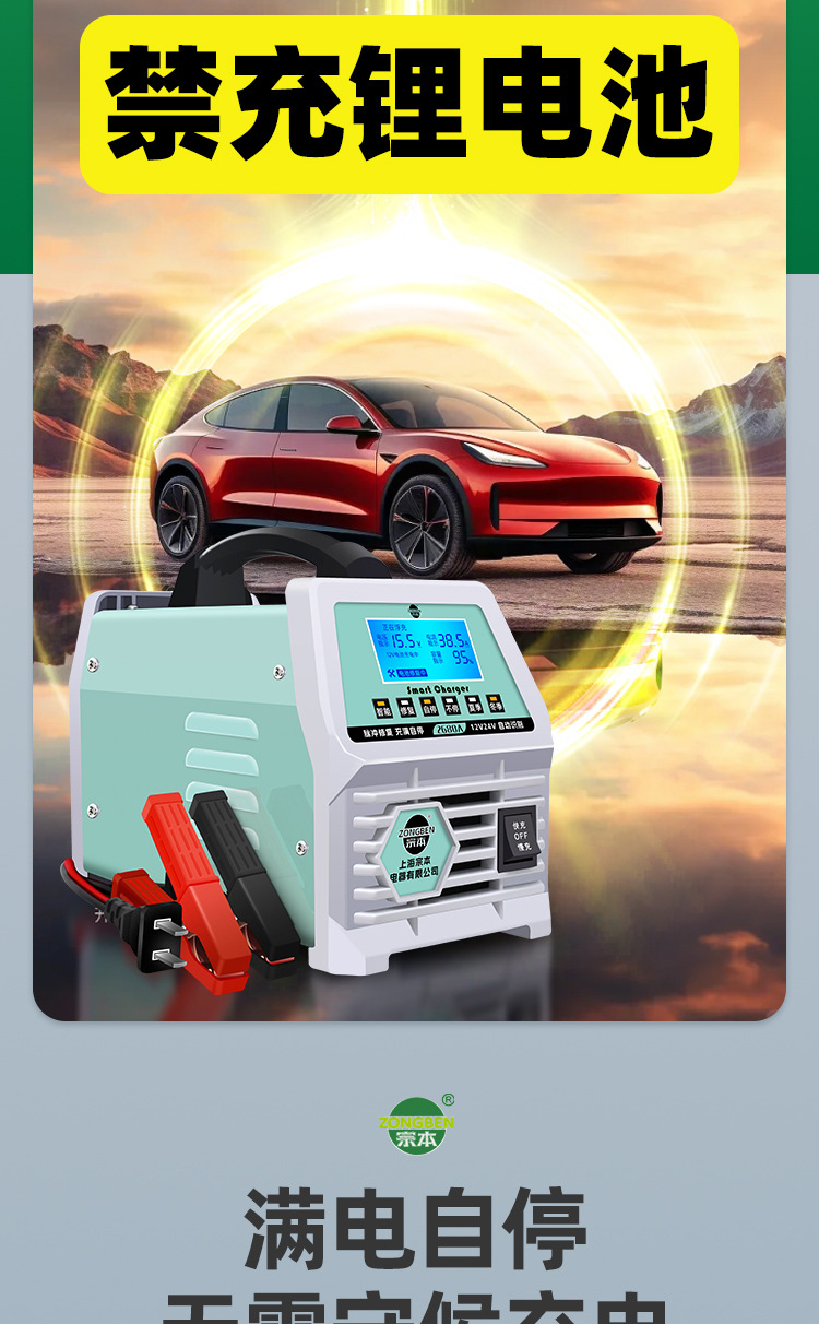 上海 Zongben 全自動インテリジェント純銅車のバッテリー充電器 12V24V セダンストップスタートバッテリー充電器