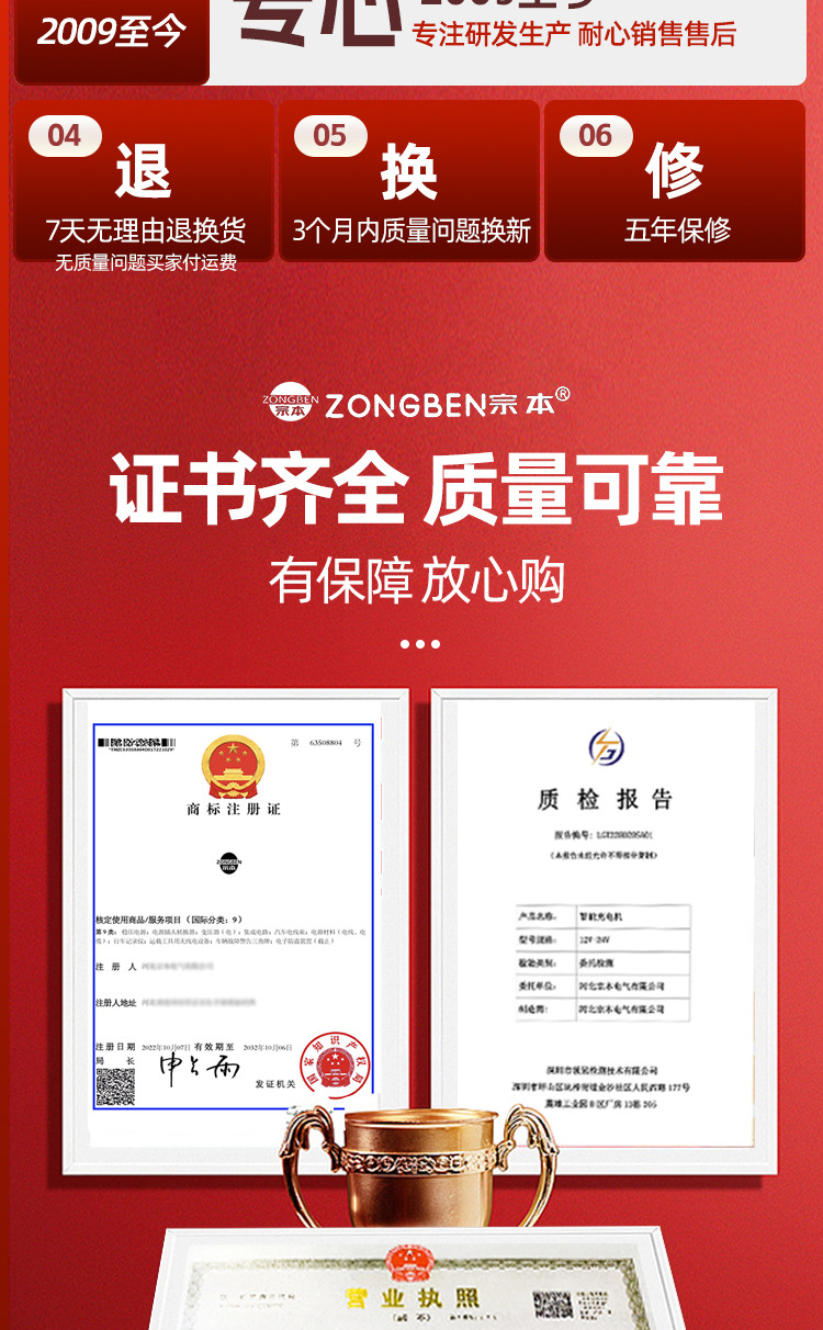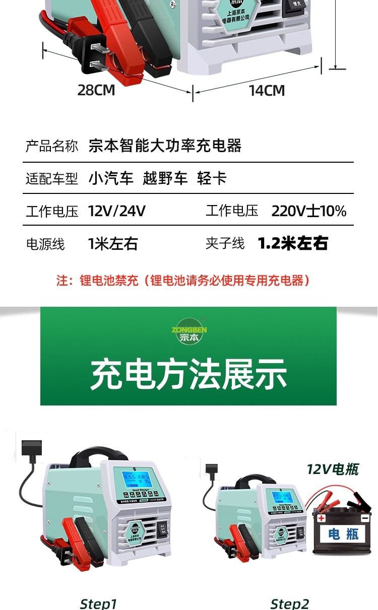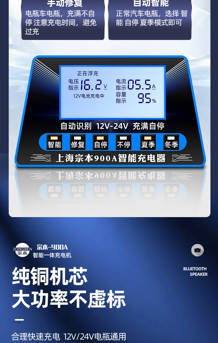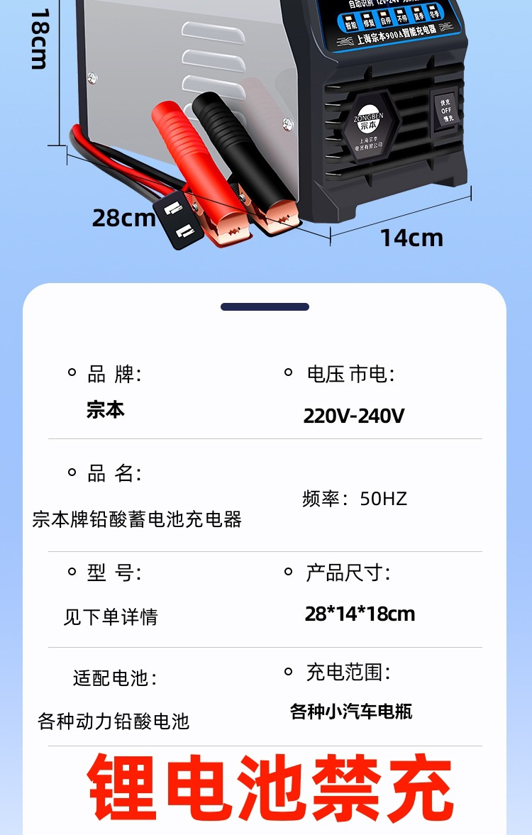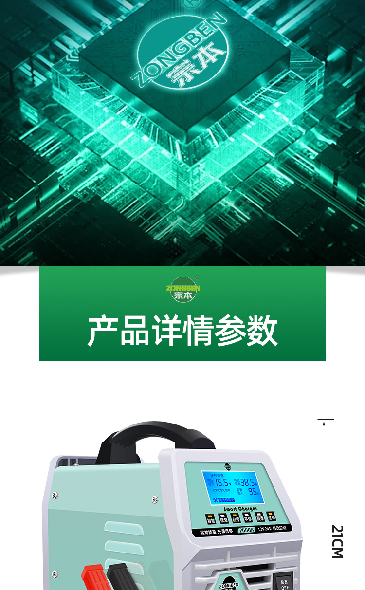 上海 Zongben 全自動インテリジェント純銅車のバッテリー充電器 12V24V セダンストップスタートバッテリー充電器