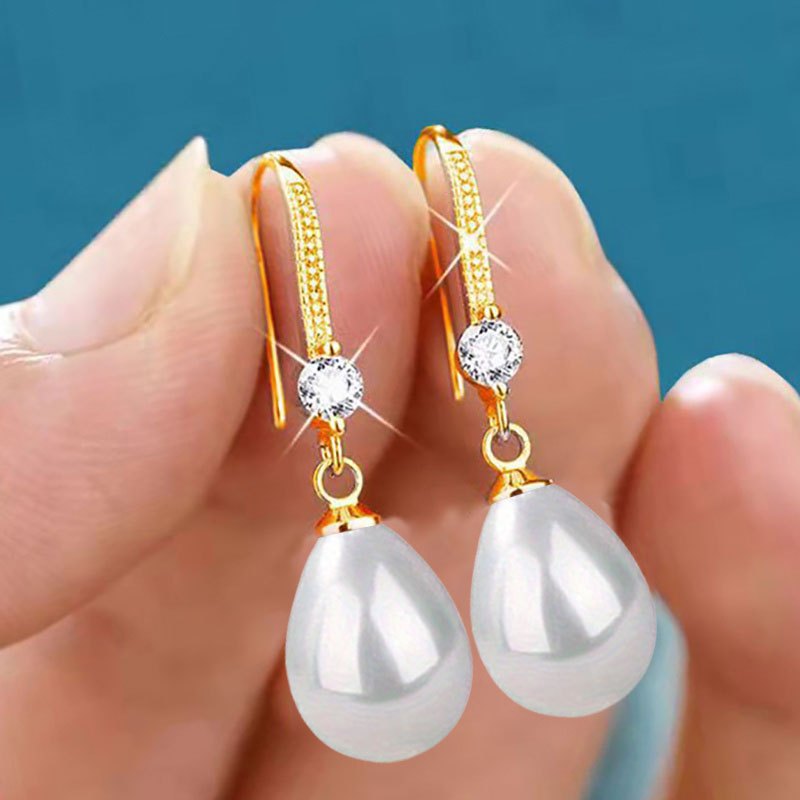 国境を越えたアクセサリーwishアマゾン速売通水滴ペンダント楕円真珠イヤリング花嫁イヤリング