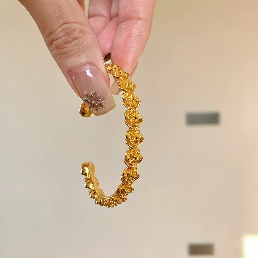 金色玫瑰花手镯手工立体雕刻轻奢百搭复古宫廷风通勤山茶花手环女