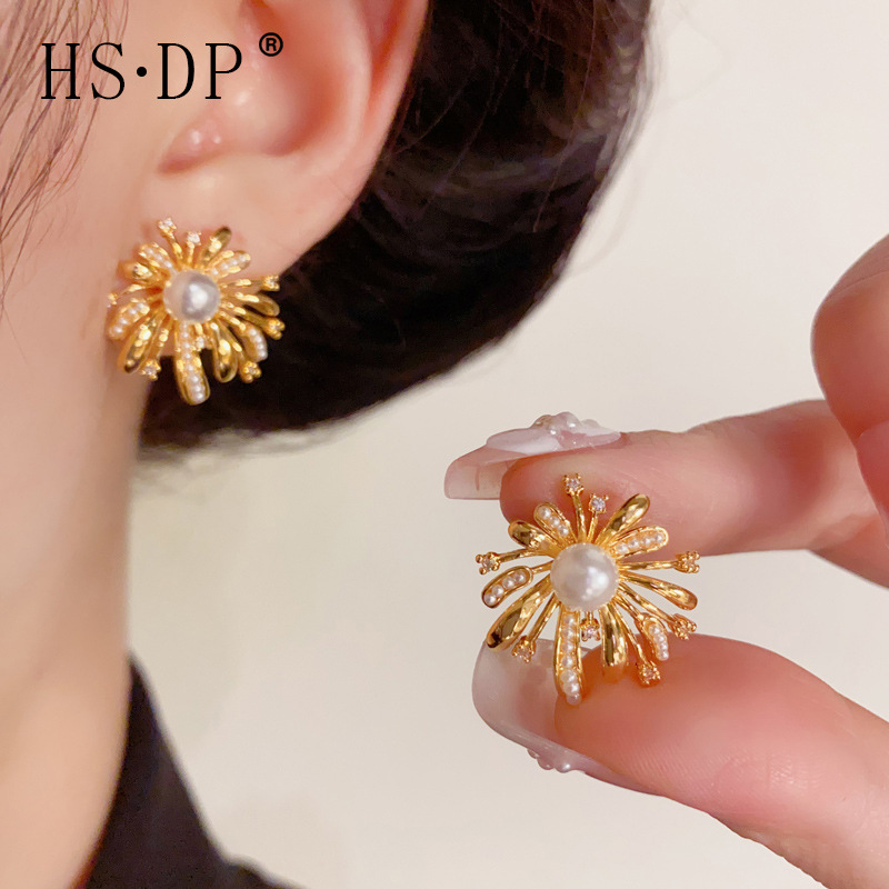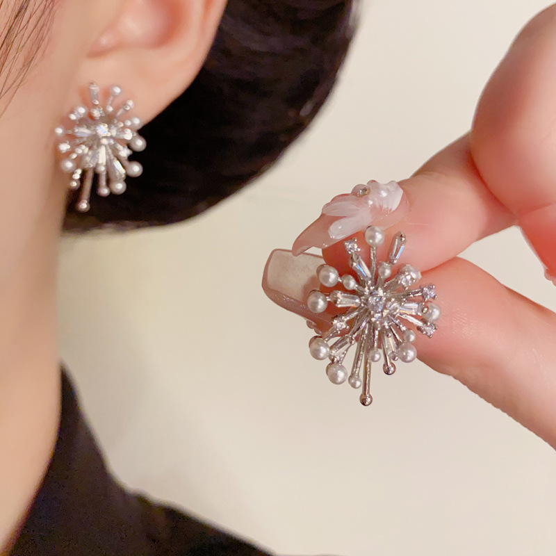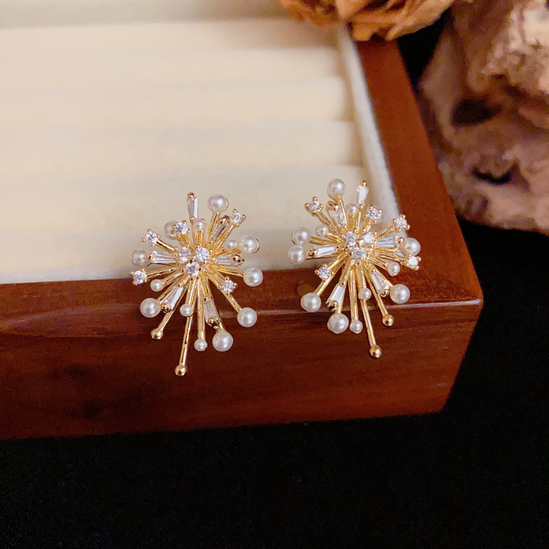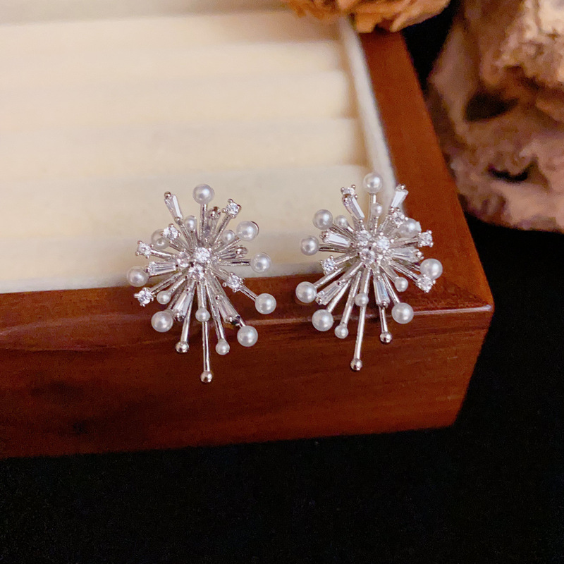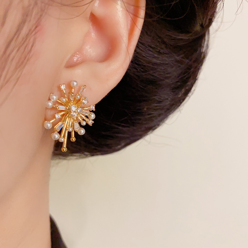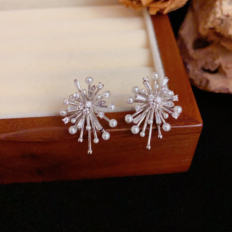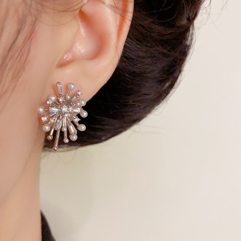 s925 シルバー針ファッションライト高級デザインパールダイヤモンド花火イヤリングパーソナライズされた多用途高品質イヤリング卸売