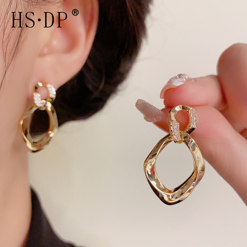 シンプルなレトロなファッションの高級感には、ドリルの金属リングのイヤリングが入っています。