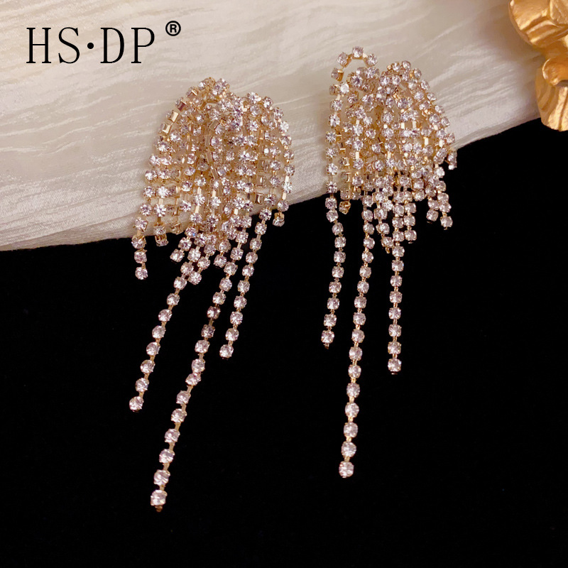 轻奢个性夸张锆石烟花长款流苏耳坠女精致百搭高级感超闪耳环批发