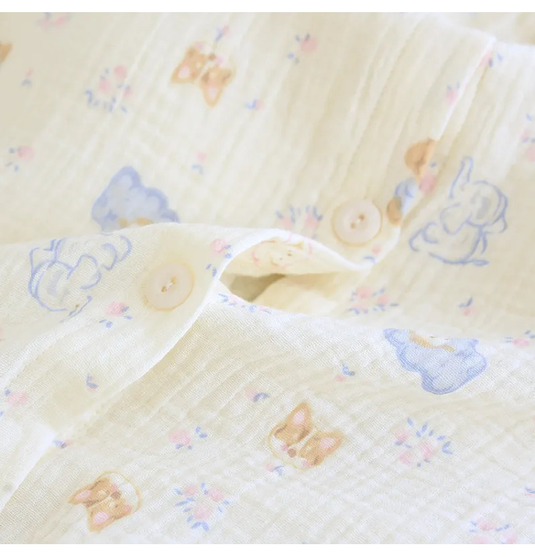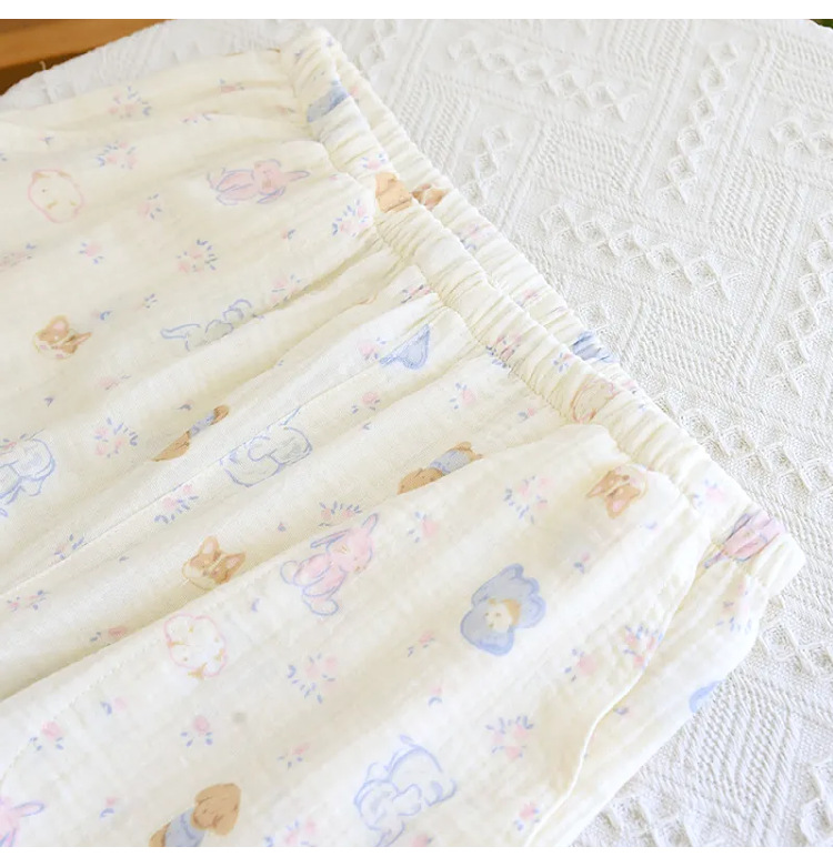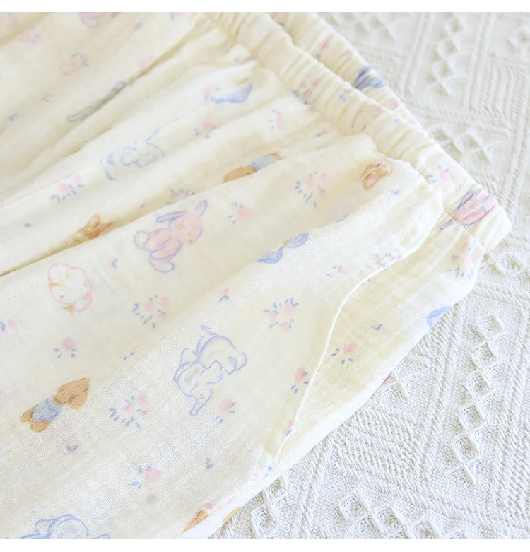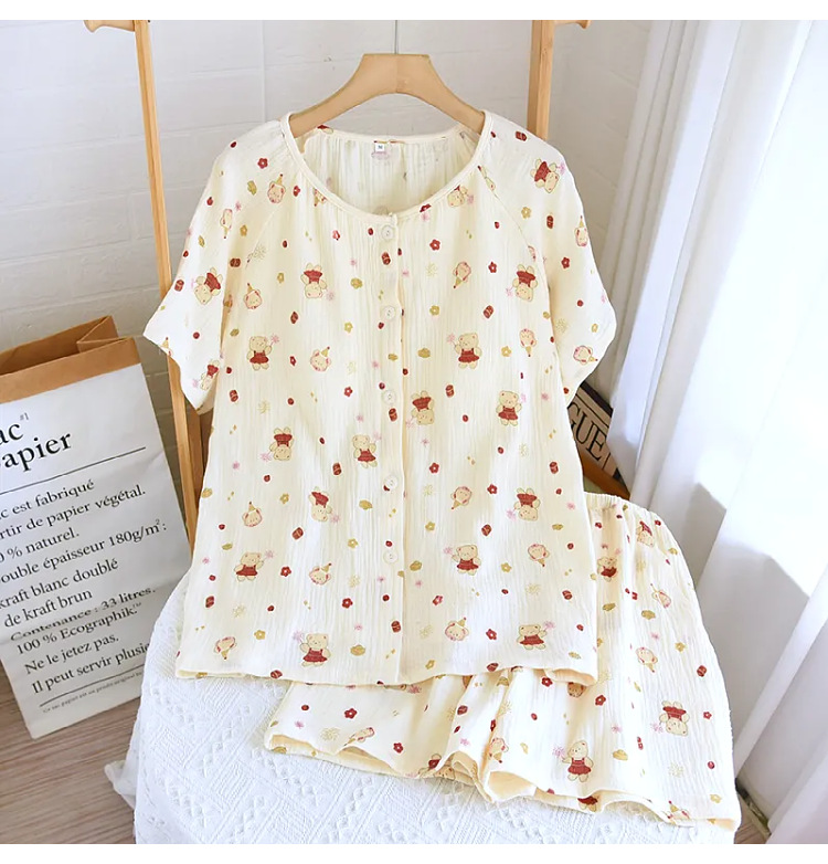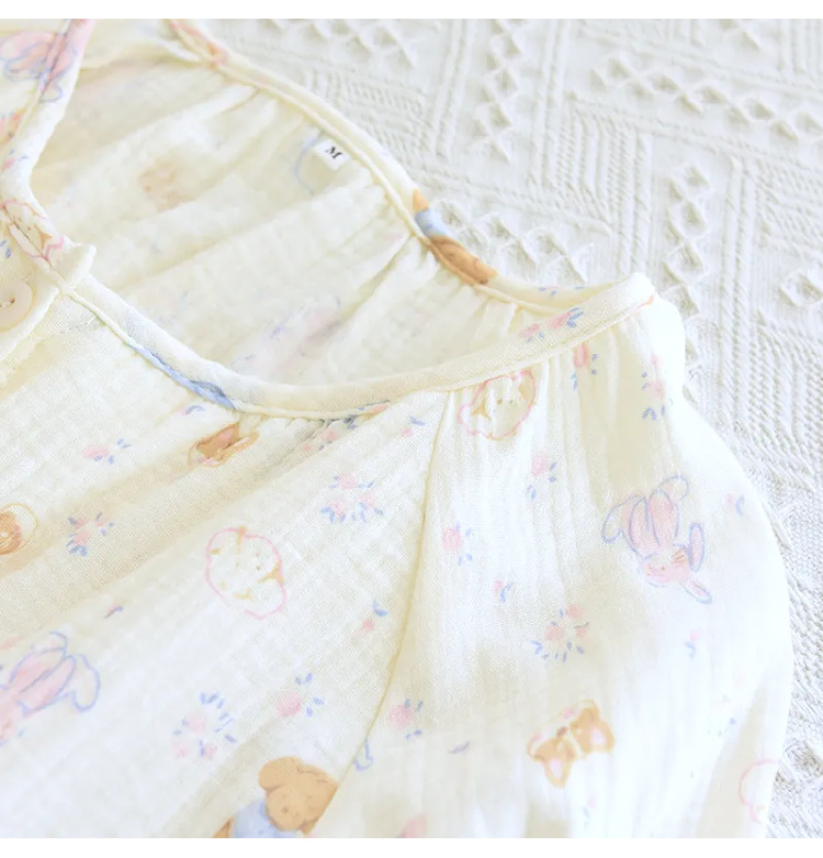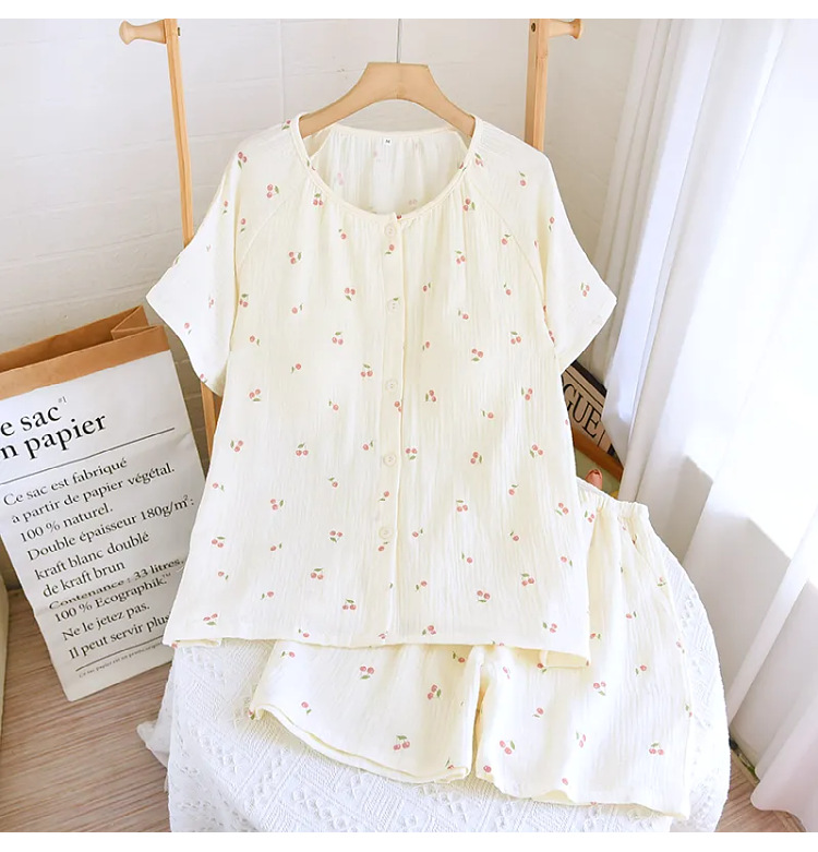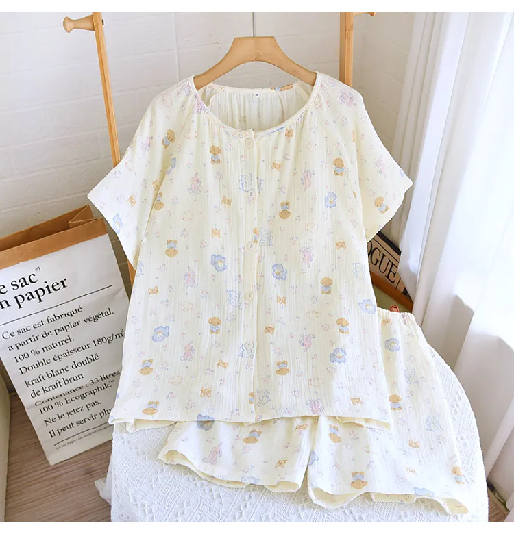 胸パッド付き純綿ガーゼレディースパジャマ夏薄手半袖ショーツゆったりかわいい綿ホーム服セット