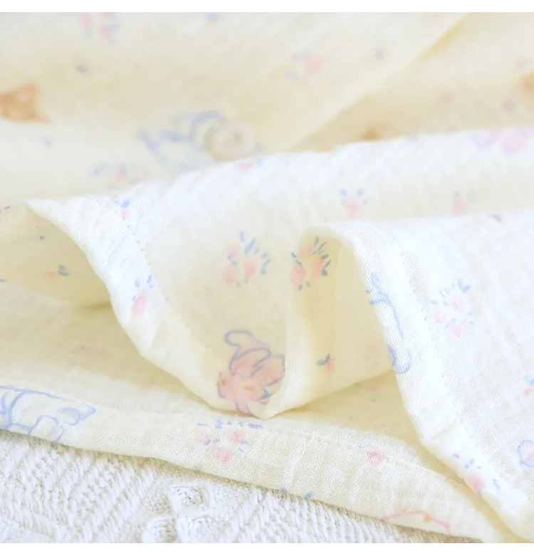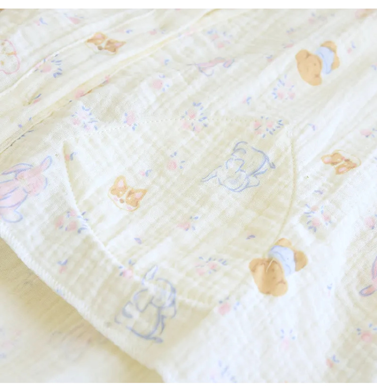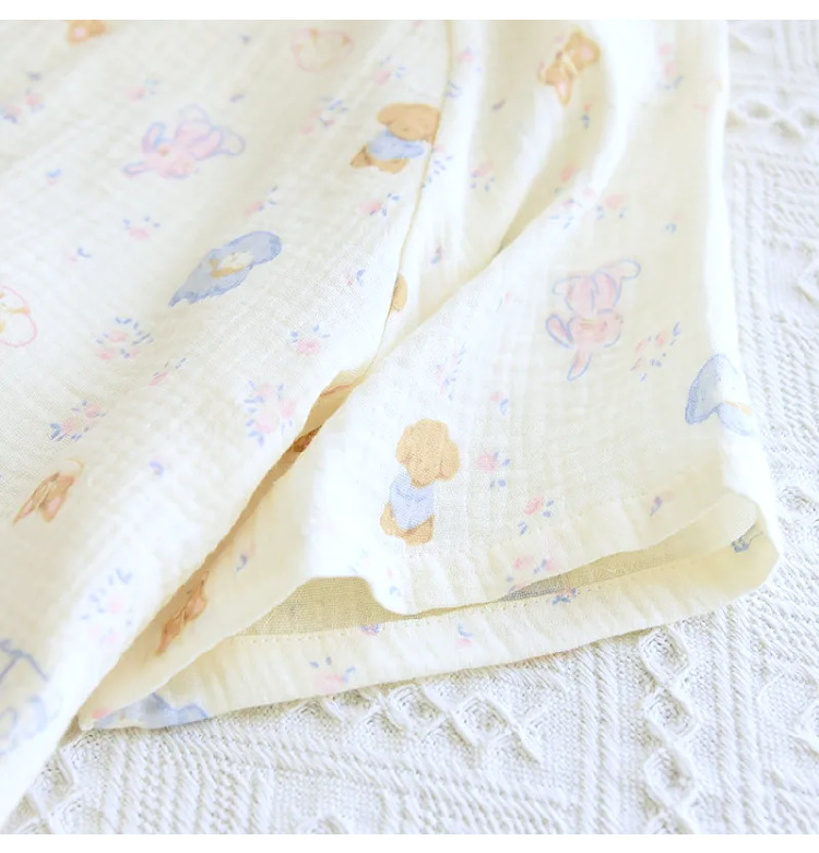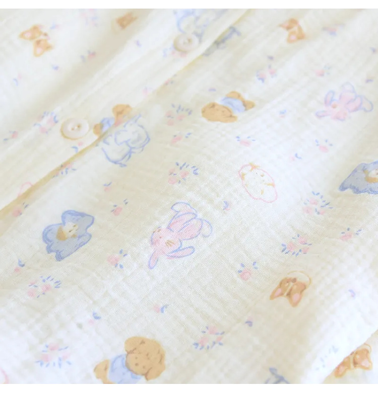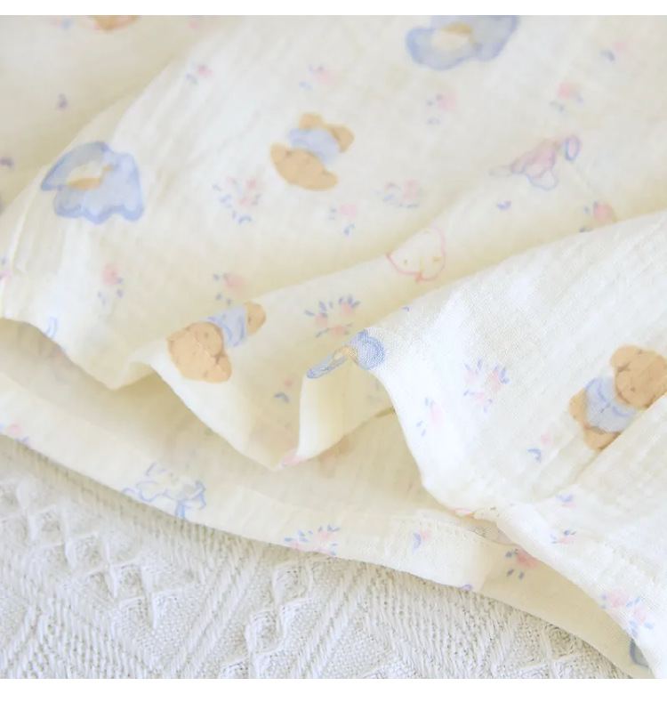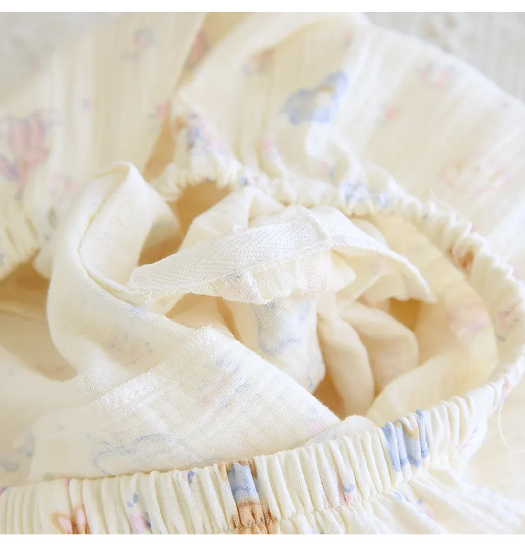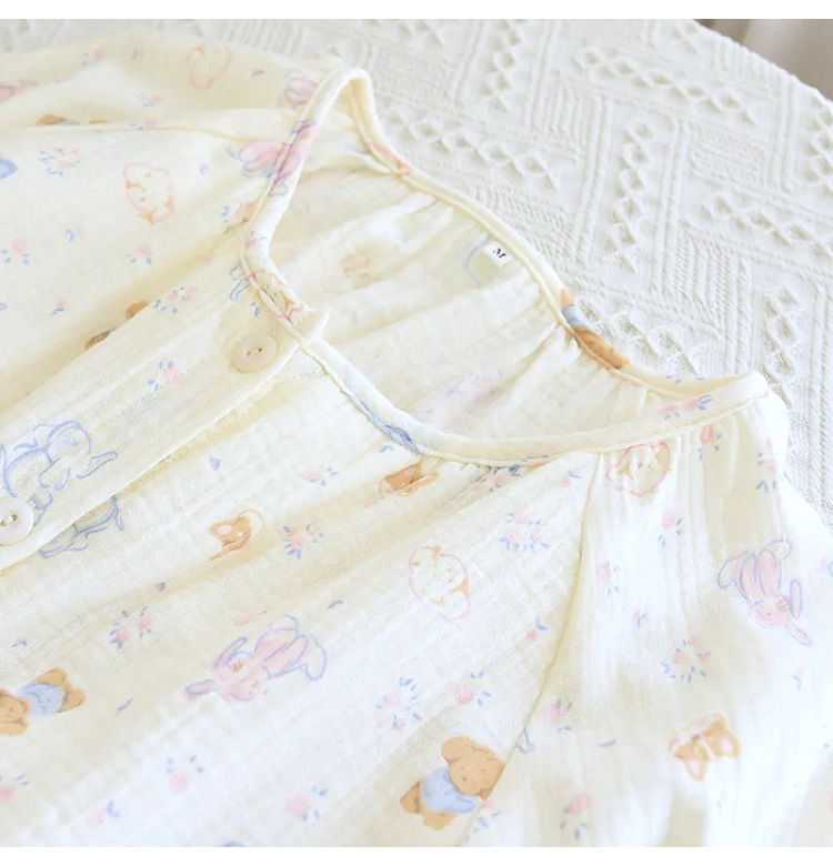 胸パッド付き純綿ガーゼレディースパジャマ夏薄手半袖ショーツゆったりかわいい綿ホーム服セット