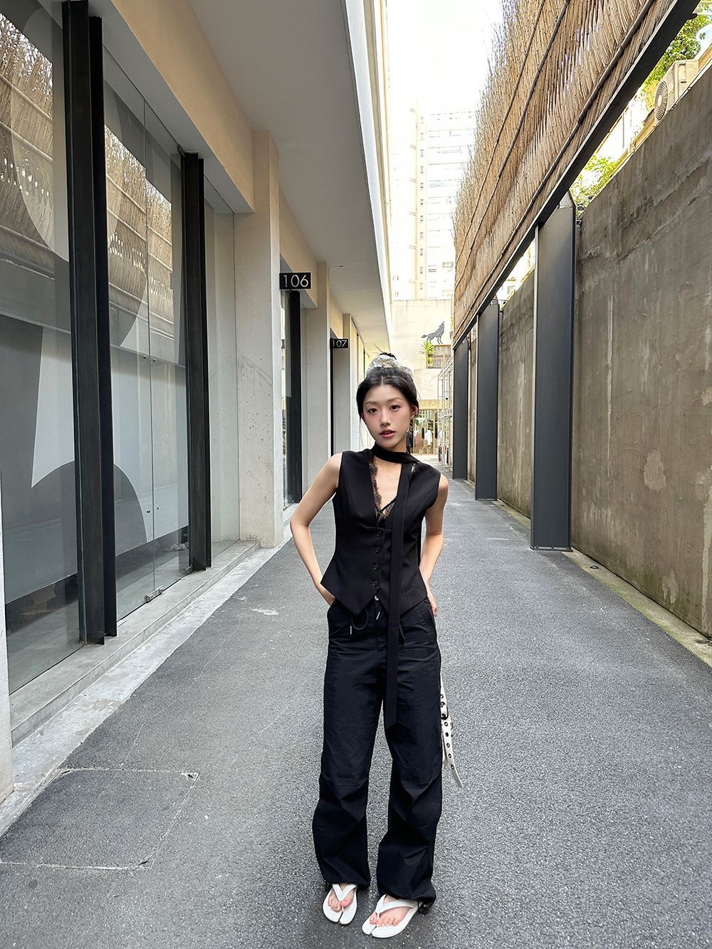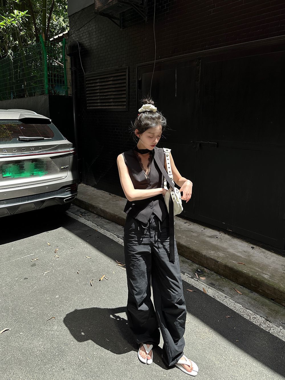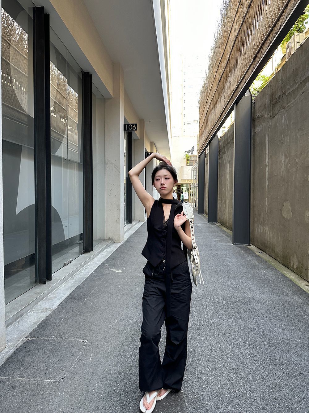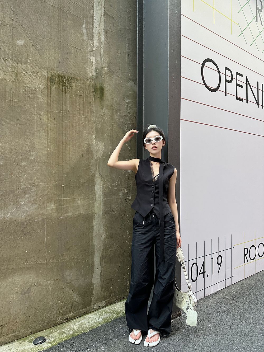 デザイン感が小さいグレーのベストは2025年の春秋モデルに合わせて、ゆったりとしたノースリーブのベストです。