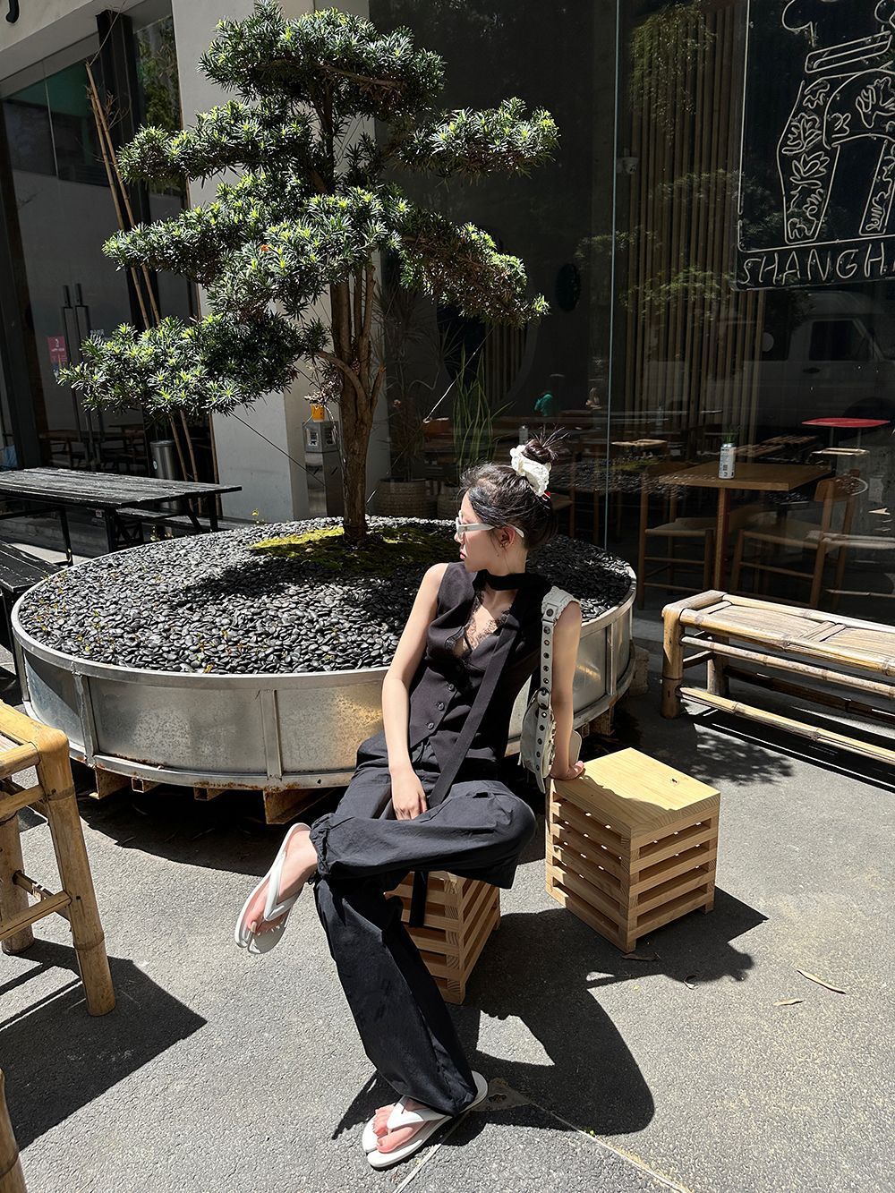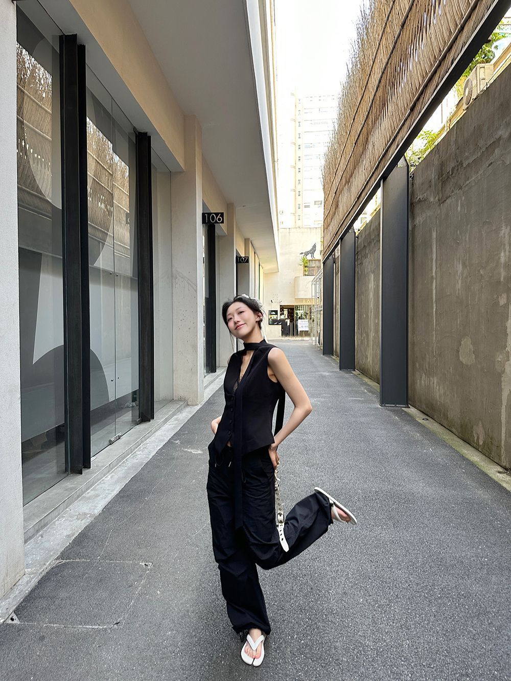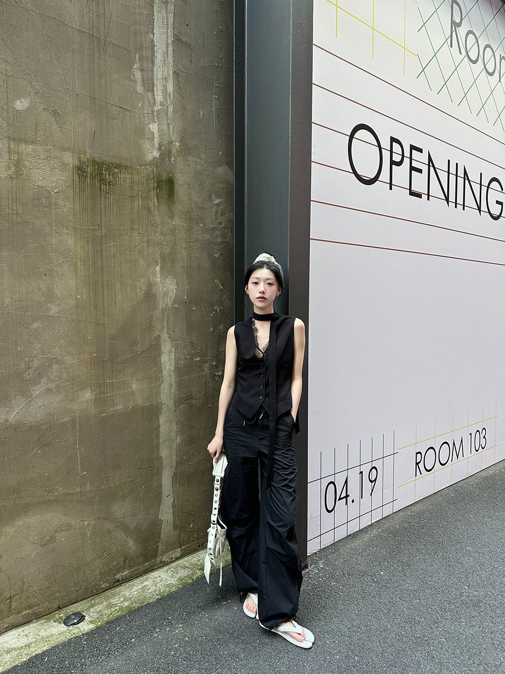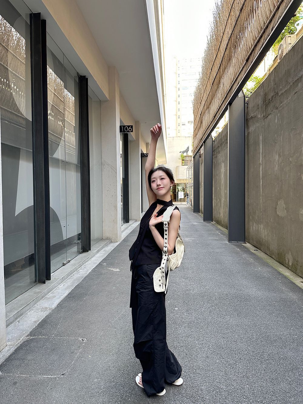 デザイン感が小さいグレーのベストは2025年の春秋モデルに合わせて、ゆったりとしたノースリーブのベストです。