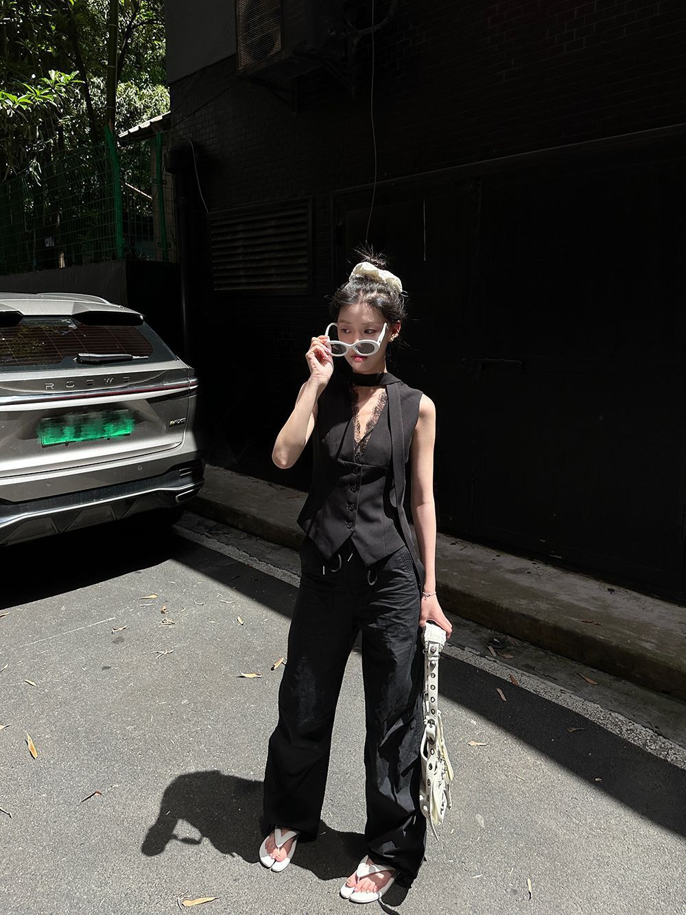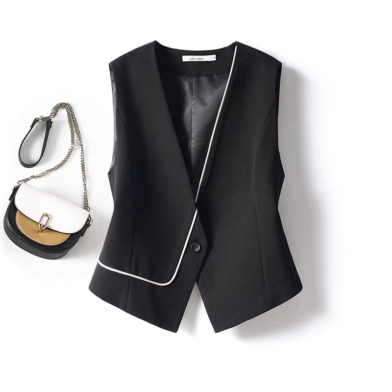 黒の古いお金風スーツのベスト2025年春秋新作上着の袖なしの高級感があります。