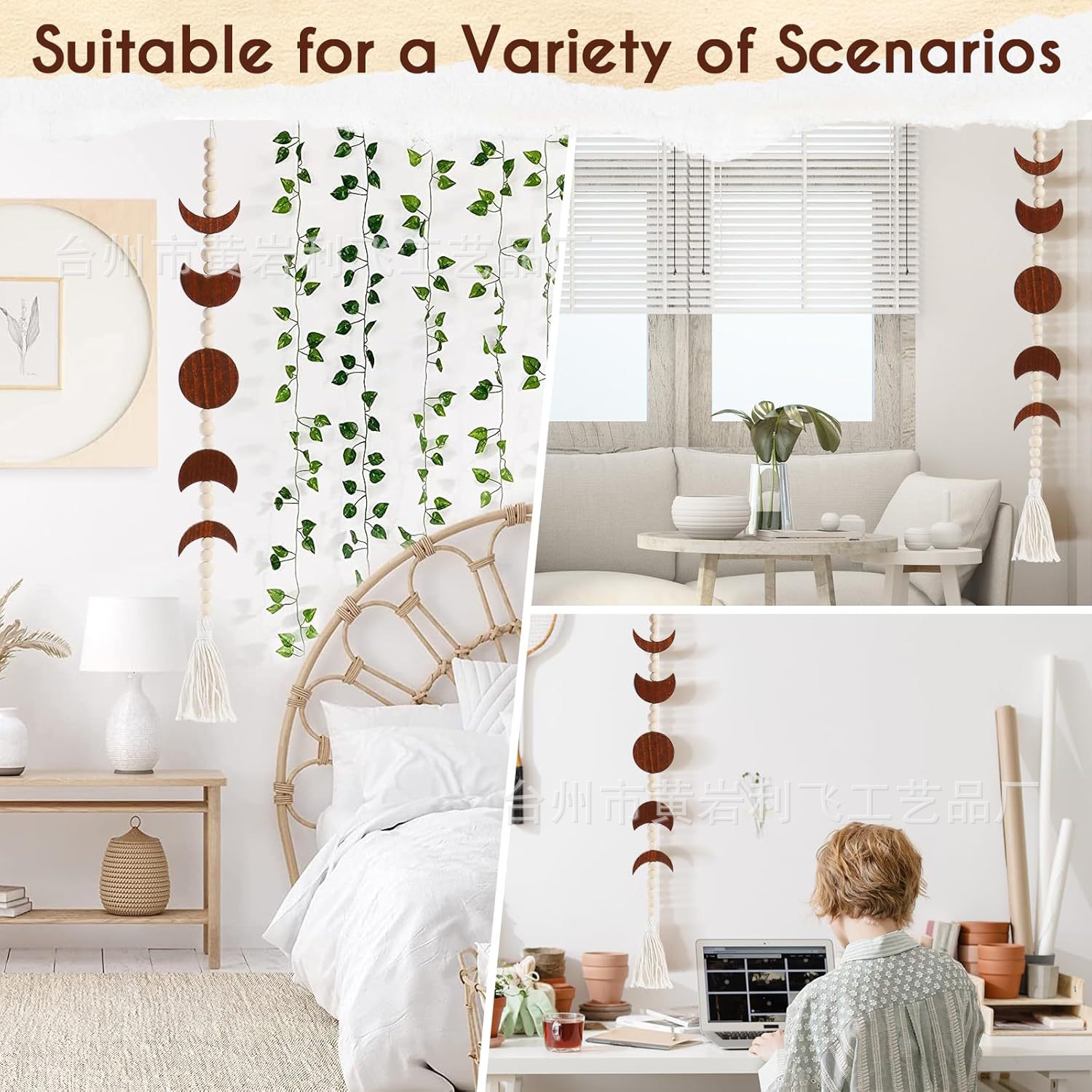 Amazon 人気の新しい北欧スタイル日食木製ペンダント織タペストリータッセルレトロ家の装飾壁掛け