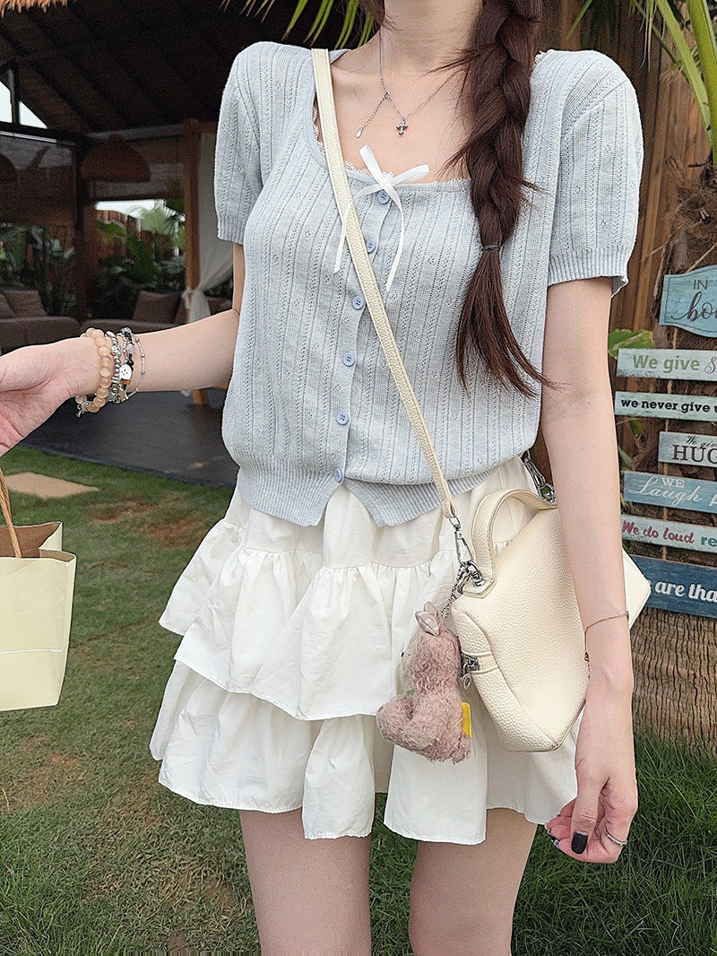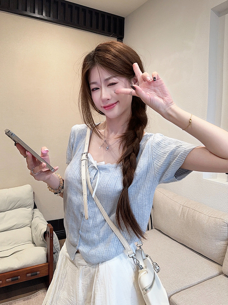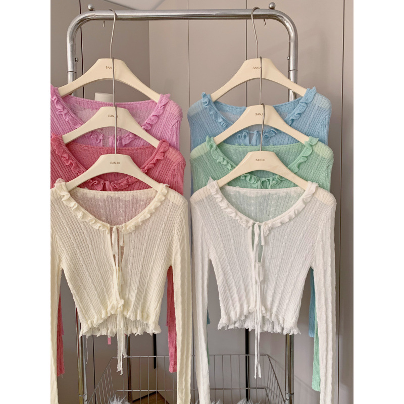 甘い耳介ショートニット日焼け止めカーディガン女性の薄い夏 2025 新しいスリムアウタートップ