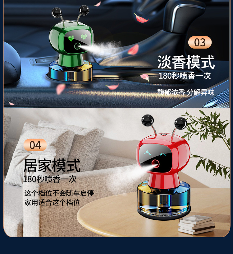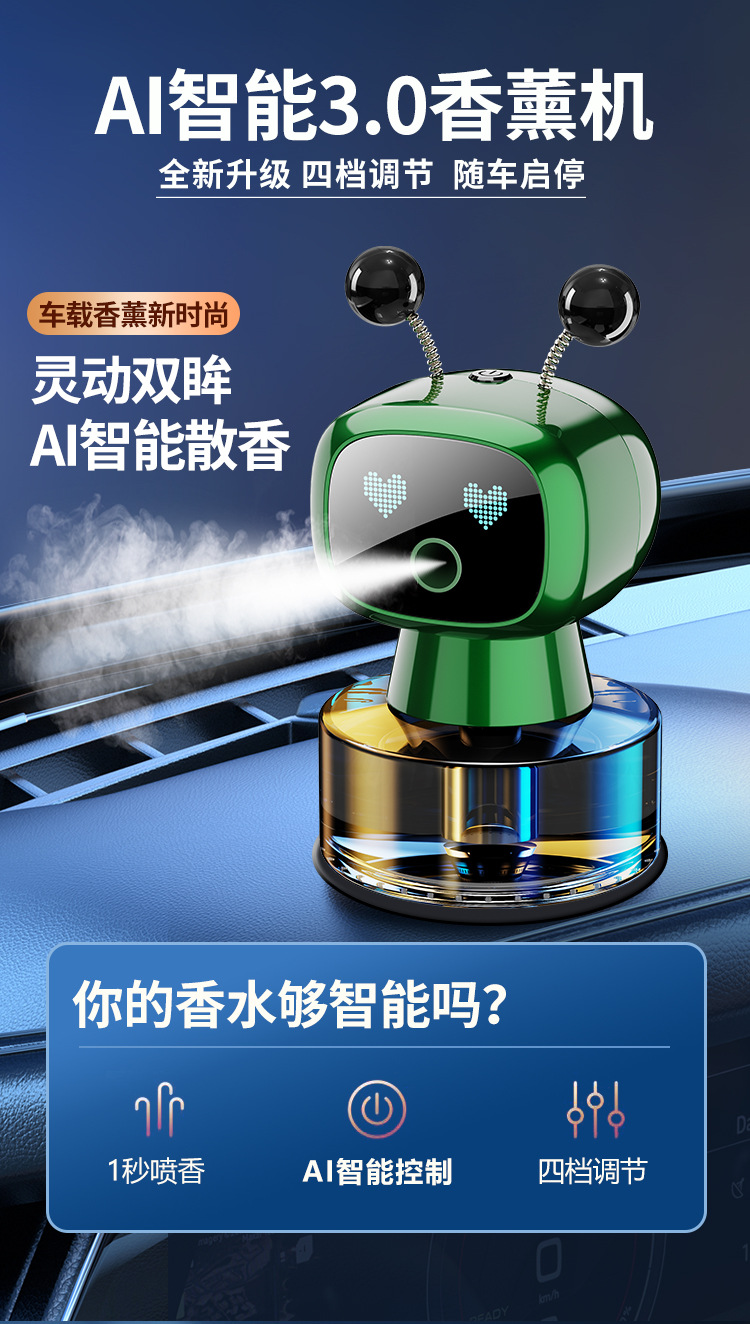 创意车载智能香薰汽车香水空调出风口装饰持久留香淡香机器人摆件