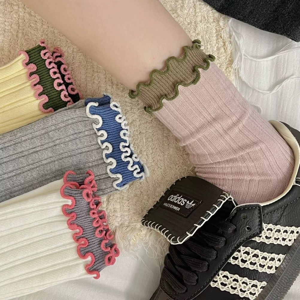 レトロな少女のドーパミン色の靴下の二重のレースは色の韓国版にぶつかります。