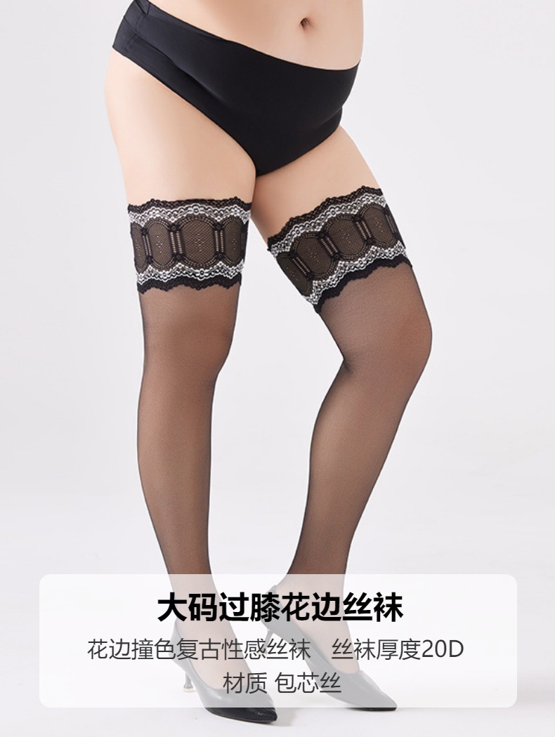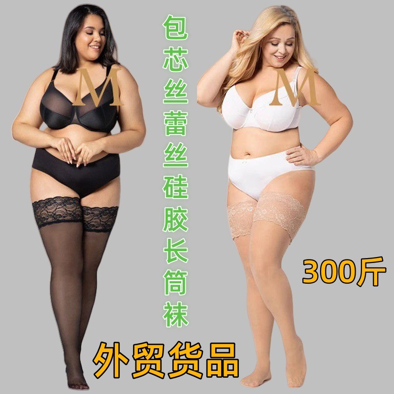 外贸特大码长筒袜女胖MM300斤加肥加大蕾丝硅胶防滑大腿袜高筒袜