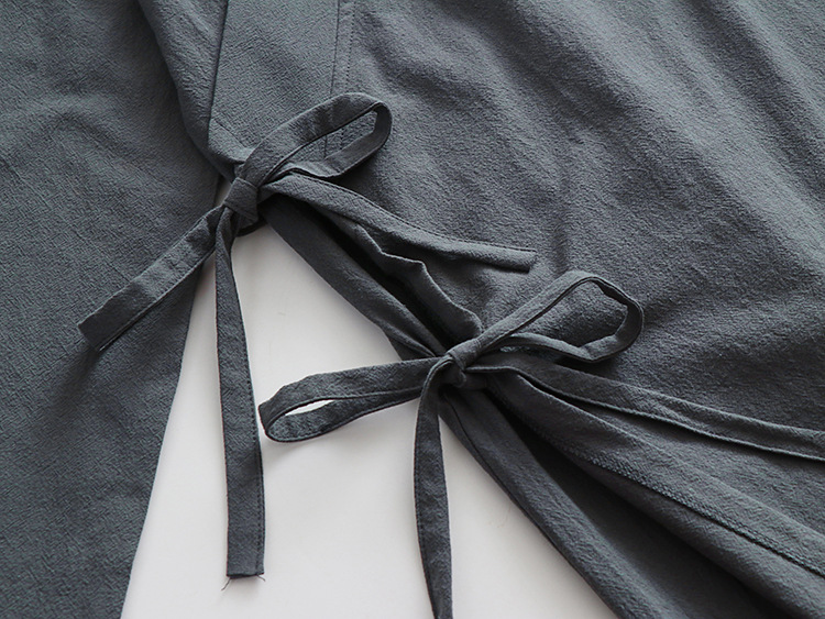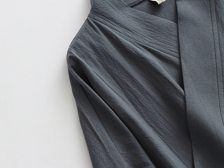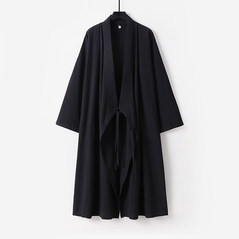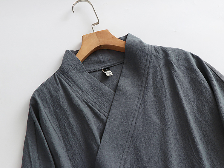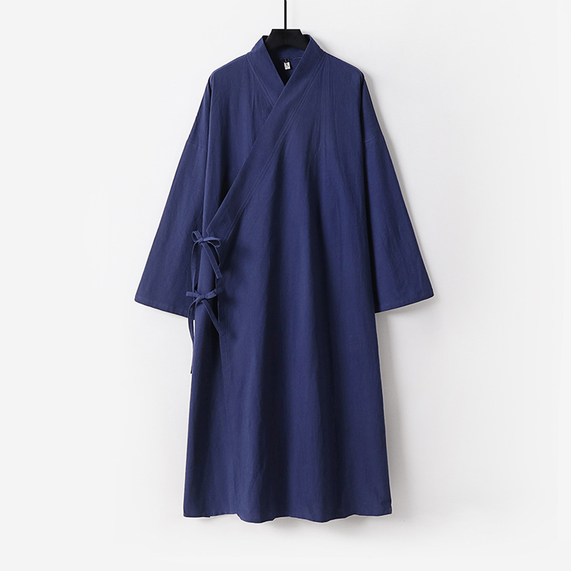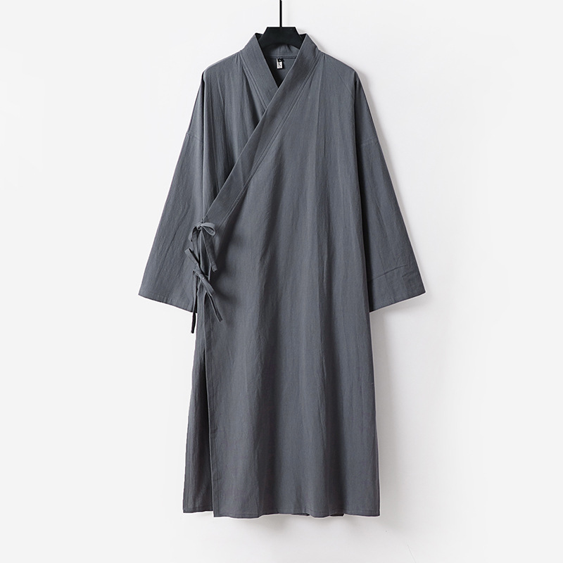 新しい綿とリネンの大きいサイズのエクストラロングローブ中国風漢服ナイトガウンレースアップ着物スチームバスローブメンズオールシーズンローブ