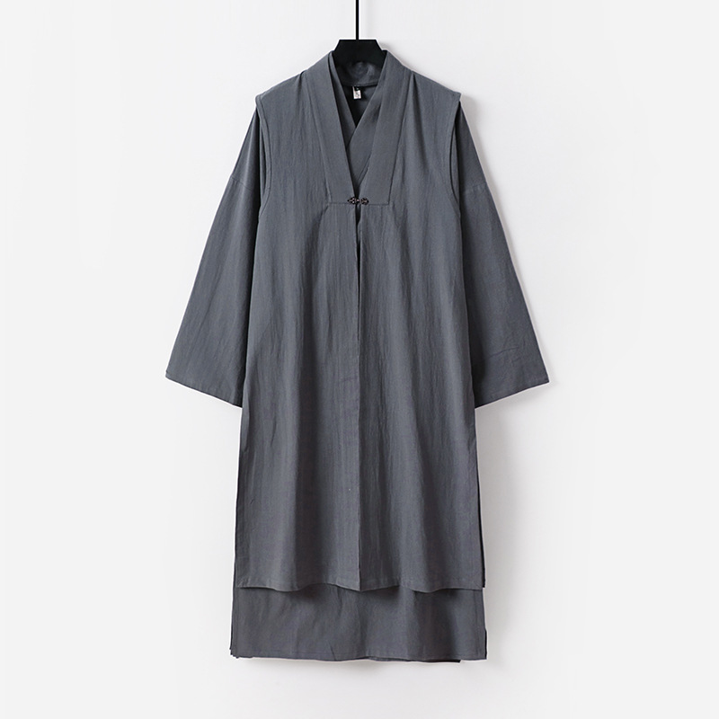中国風の紳士服仏教中国風リネンアウタースーツ若者唐スーツトレンディなブランドレトロスタイル漢服レースアップシャツ男性用