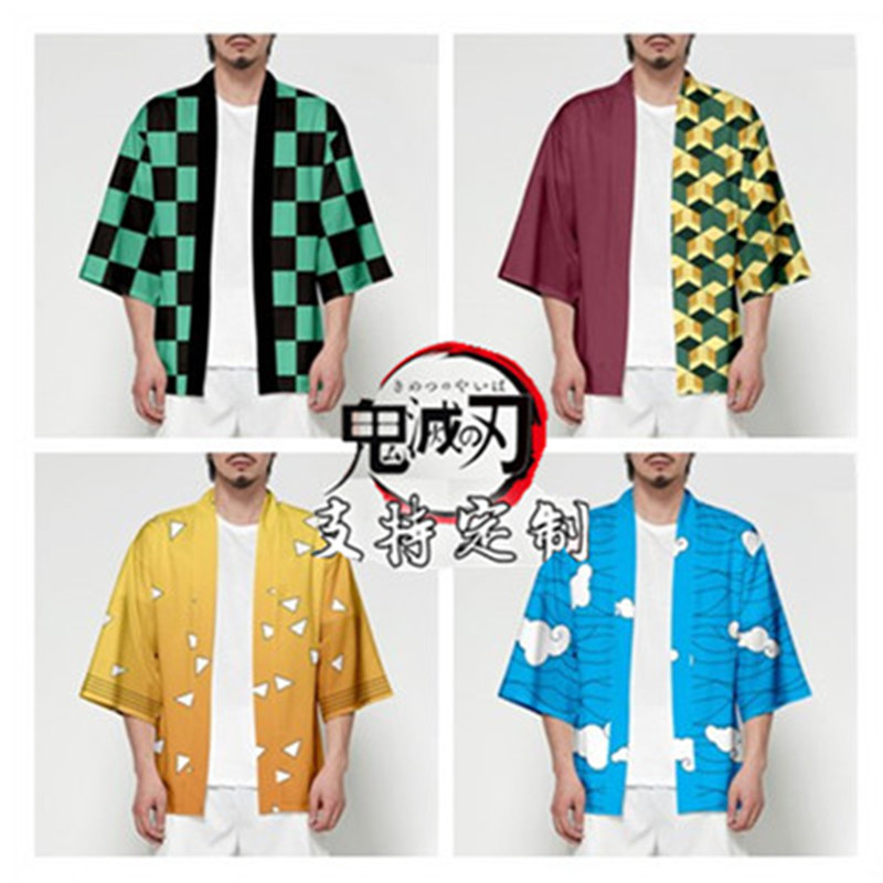 アニメ鬼滅の刃大人炭治郎豆プリント子供マント着物cosグッズ羽織ジャケット