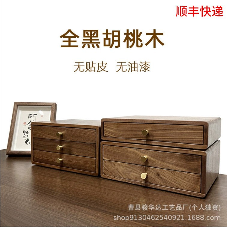 在庫あり日本製ウォールナットジュエリーボックスデスクトップ多層引き出しキャビネットオフィス収納デスクトップ長方形木箱