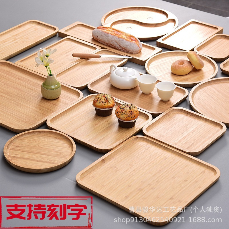 スポット卸売竹木製ラウンドトレイ和風ホテル長方形プレートピザプレートケーキスナックプレート印刷可能なロゴ
