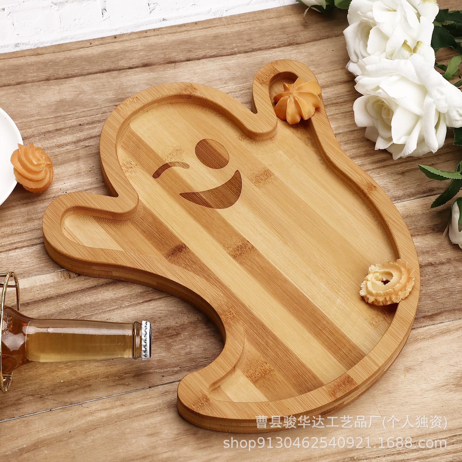 Sufa 木製ハロウィンかわいいゴーストチーズボードホームパーティーフルーツスナックスナックトレイホーム木製ディナープレート