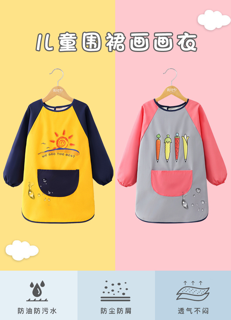 子供用エプロン、絵画スモック、男の子と女の子、中型および大型の子供用保護服、家庭用キッチン防水絵画アート逆着用