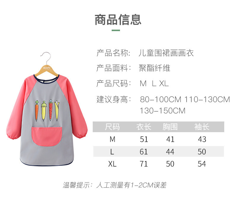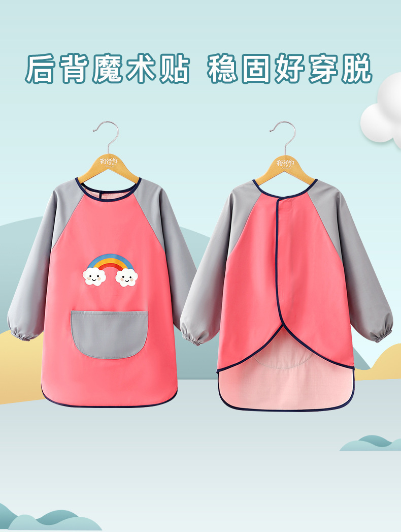 工場直送子供用エプロン、絵画服、逆着服、幼稚園スタジオアートベルクロ長袖防汚スモック