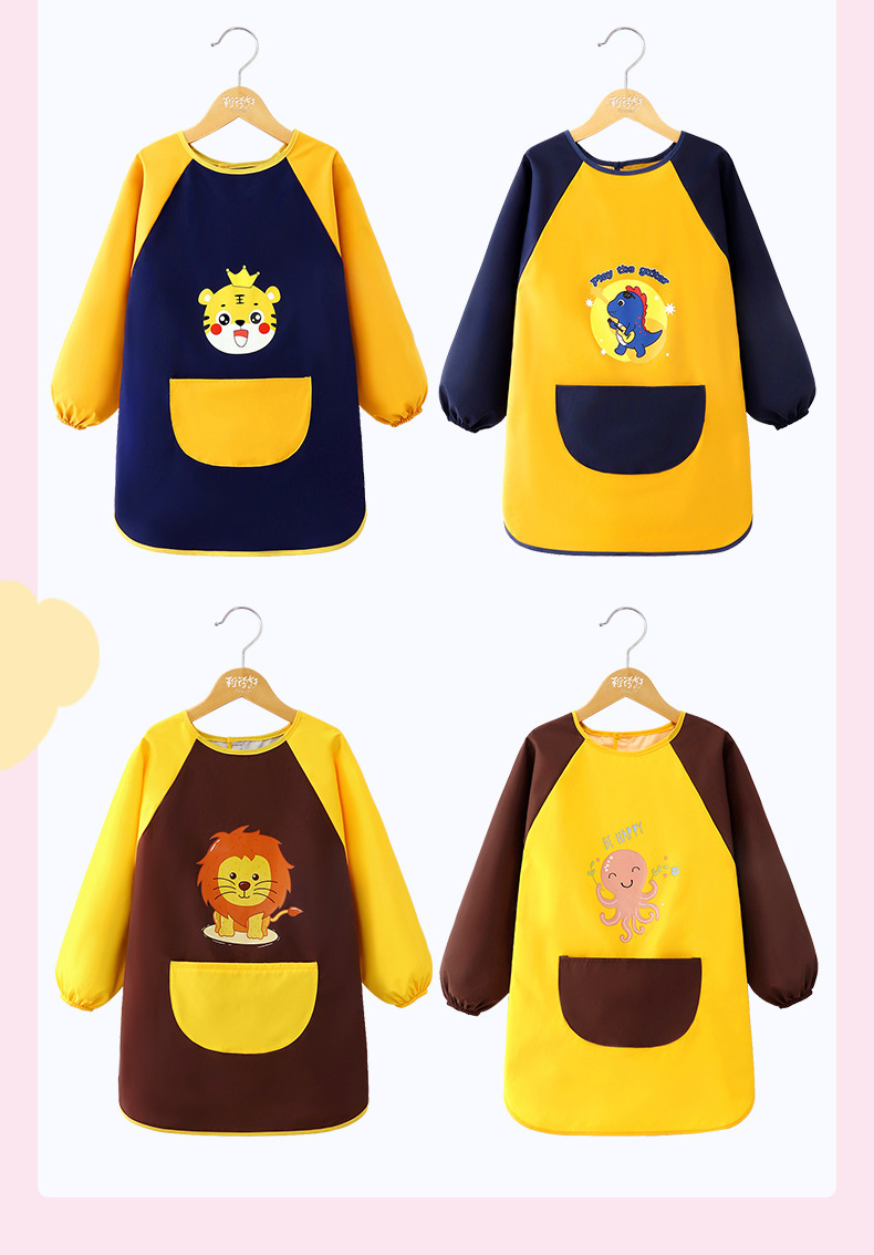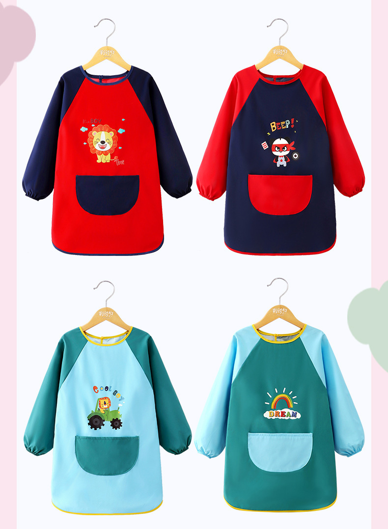 子供用防水絵画服幼稚園プリントスモックスタジオプリント防水逆着用エプロン男の子と女の子用