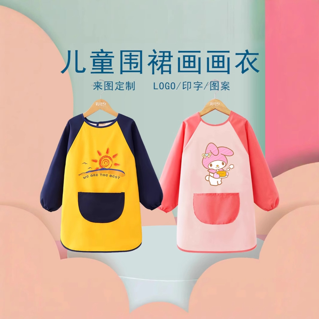 子供用防水お絵かき服、幼稚園向けカスタムオーダーメイド、画室用プリント入り、男の子と女の子用エプロン、逆着用保護服