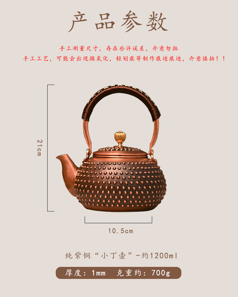 純銅ケトル、大容量銅急須、家庭用茶こし、手作り直火ケトル