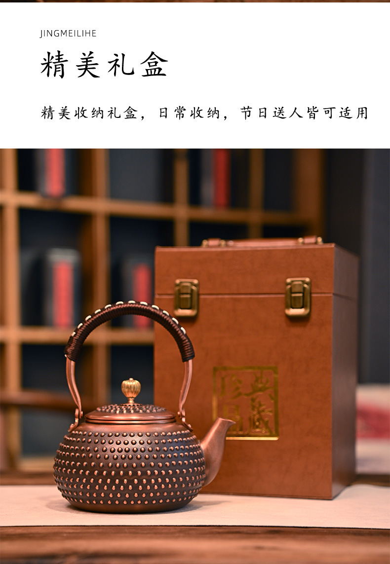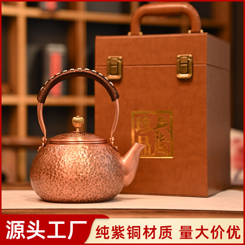 铜壶烧水壶围炉煮茶泡茶手工纯紫铜茶壶红铜明火家用茶具礼盒套装