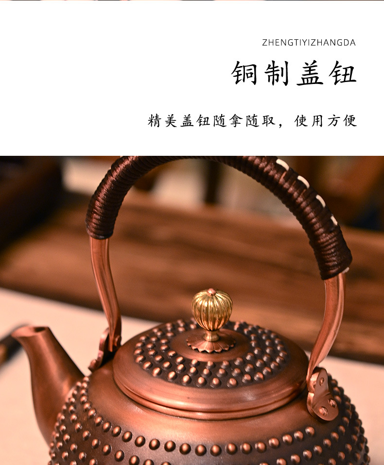 純銅手作り大容量銅紫銅煮茶ティーポット囲炉泡茶煮水純手作り火家庭用湯たんぽ
