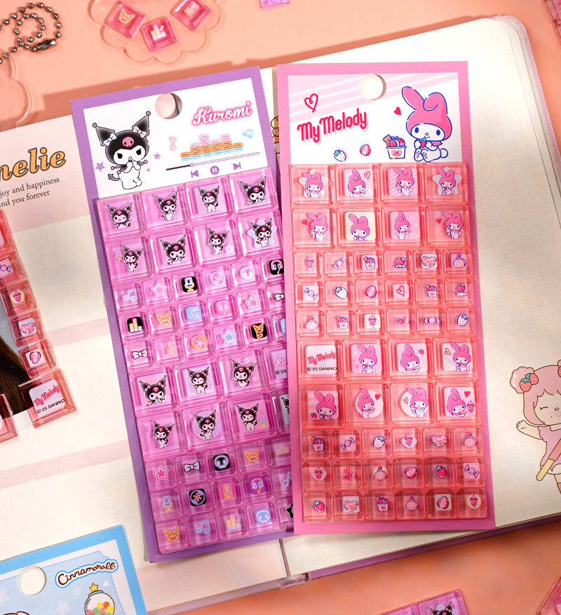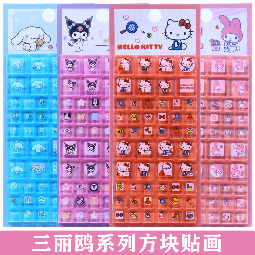 三丽鸥卡通方块浮雕贴纸儿童酷洛米KT猫大耳狗美乐蒂咕卡装饰贴画